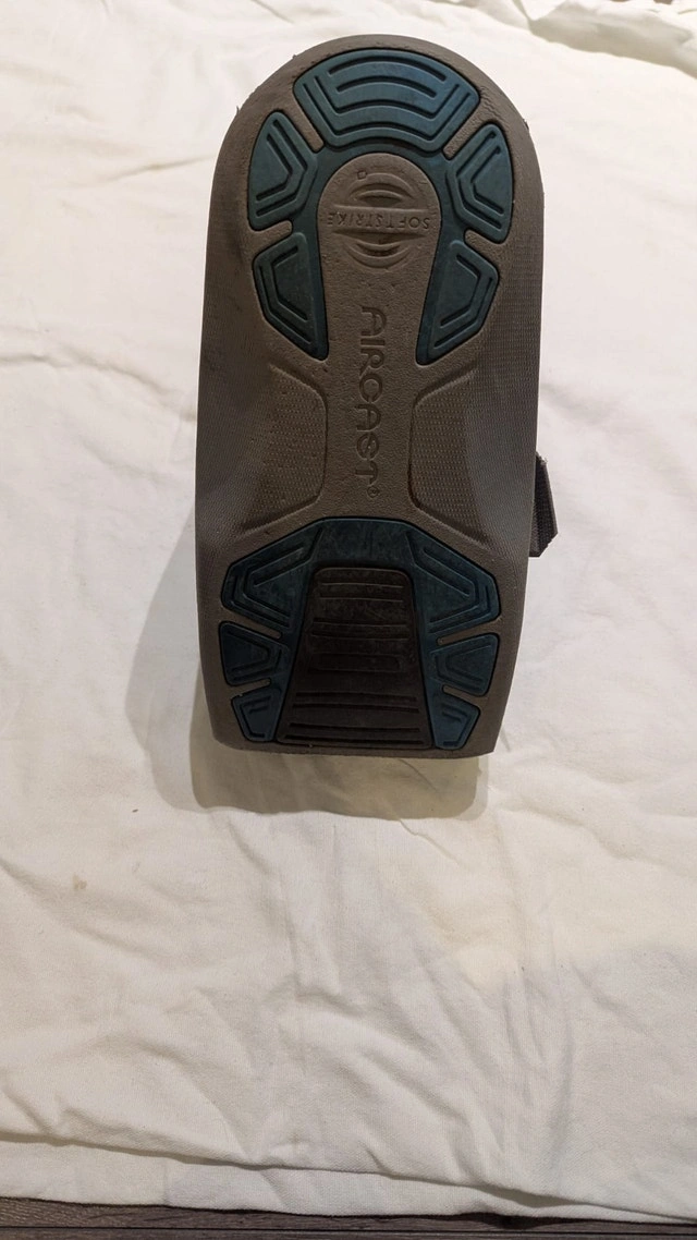 Aircast Airselect Standard walking boot, size Medium (fits men's shoe size 7-10). This boot offers moderate support and comfort, ideal for stable fractures of the foot/ankle/lower leg, severe ankle sprains, or post-operative immobilization. It features a durable shell, adjustable air cells for compression, SoftStrike technology to absorb shock, and a rocker sole to promote a natural gait. Pick up in Kitchener or Brampton. Cash accepted.