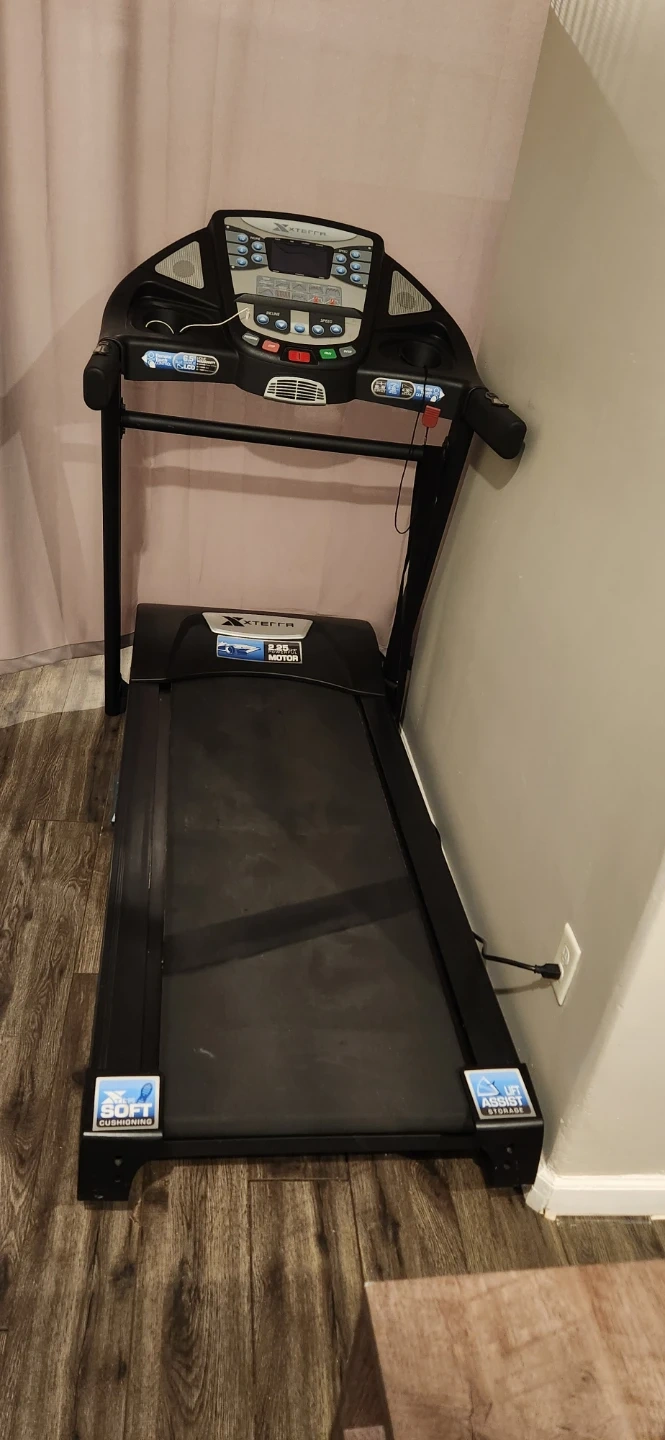 Selling an Xterra treadmill with a 2.25 HP motor. It features soft cushioning and lift assist storage for convenience. Great for getting your steps in!