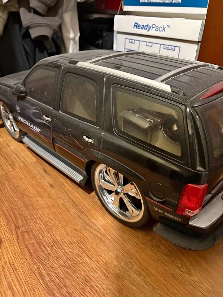 Selling this Remote Controlled Cadillac Escalade Car. Had it for a while, everything works perfectly fine. There's a slight crack on the controller, but it still works perfectly fine. Asking for $75