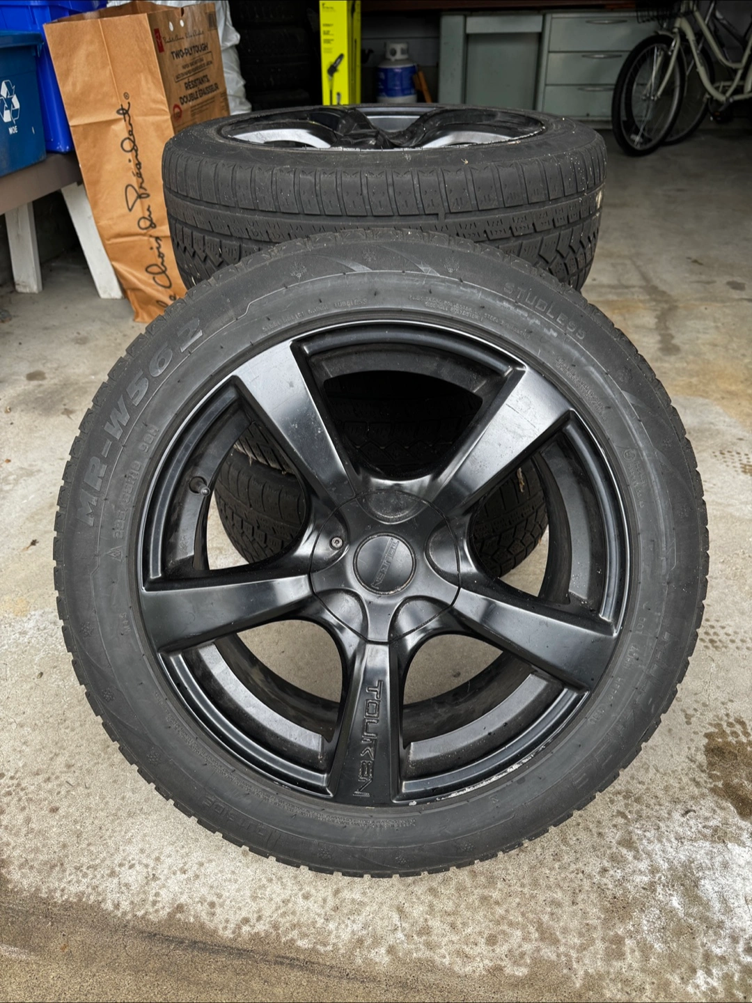 Buy & SellFour Touren Black 18 inch rims with winter tiresFour Touren Black 18 inch rims with winter tires$900Set of four Touren rims. Black, 18 inch. Mounted winter tires. Good condition.ConditionGoodWHERE TO MEETWoodbridgeView MapSELLERSandyWoodbridge100 reviews1 chats·3 favorites·159 viewsSEND CHAT TO SELLERHi Sandy! I’m interested in your listing.Hi Sandy! I’m interested in your listing.Get the Karrot app to chatSign In to chat
