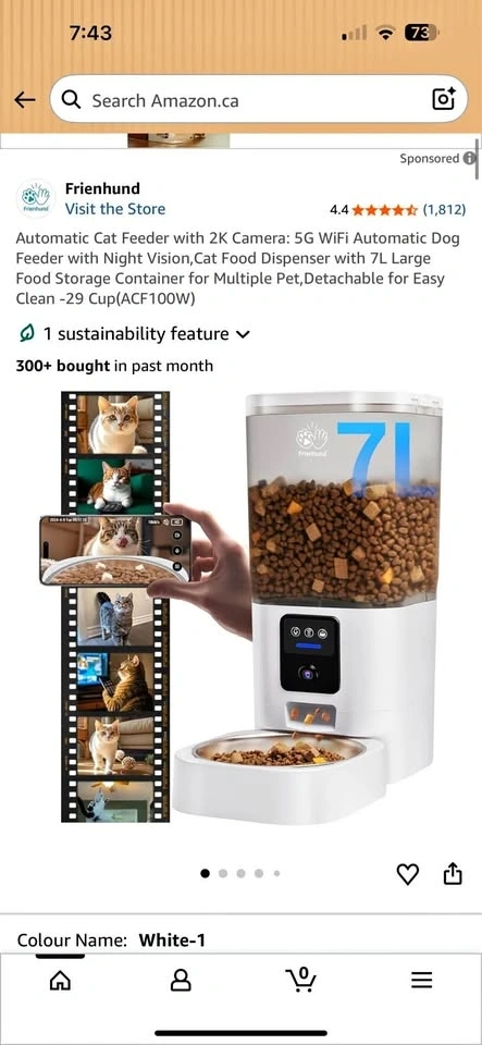 Selling a brand new, never used Frienhund Automatic Pet Feeder (Model ACF100W). This is a high-end model that offers full control over your pet's feeding schedule from your phone. It has a 2K High-Definition Camera with Night Vision, 5G & 2.4G Dual-Band WiFi, and a large 7L capacity (holds up to 29 cups of dry food), perfect for cats or small-to-medium dogs. You can easily set portion sizes and feeding times via the app. The feeder features a detachable design with a stainless steel bowl for easy cleaning and has a dual power supply (wall outlet or batteries). Everything works perfectly. You're welcome to test it here before buying. This unit retails for much more elsewhere. My price is $35 firm.