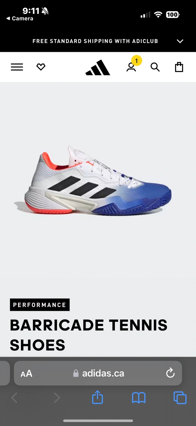 Adidas “Barricade” Men’s Tennis Shoes (size 8.5)