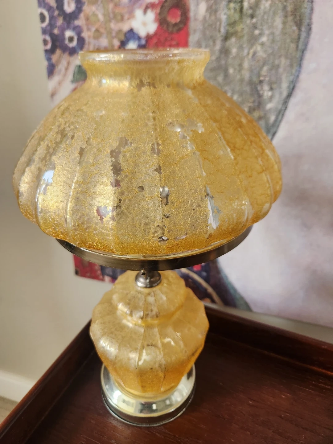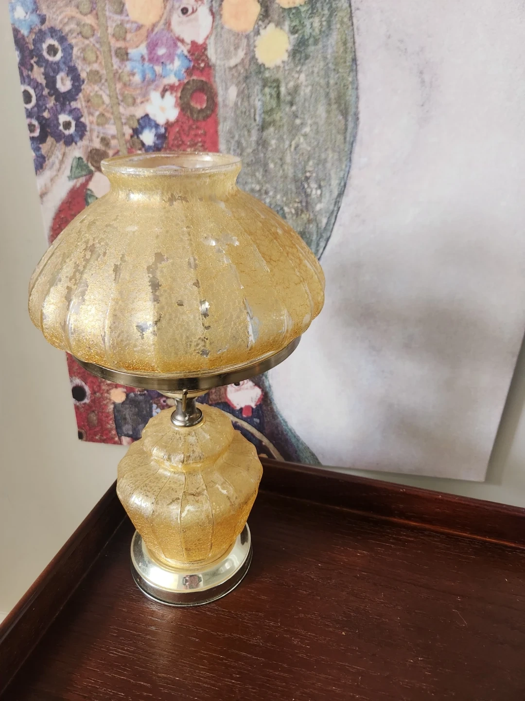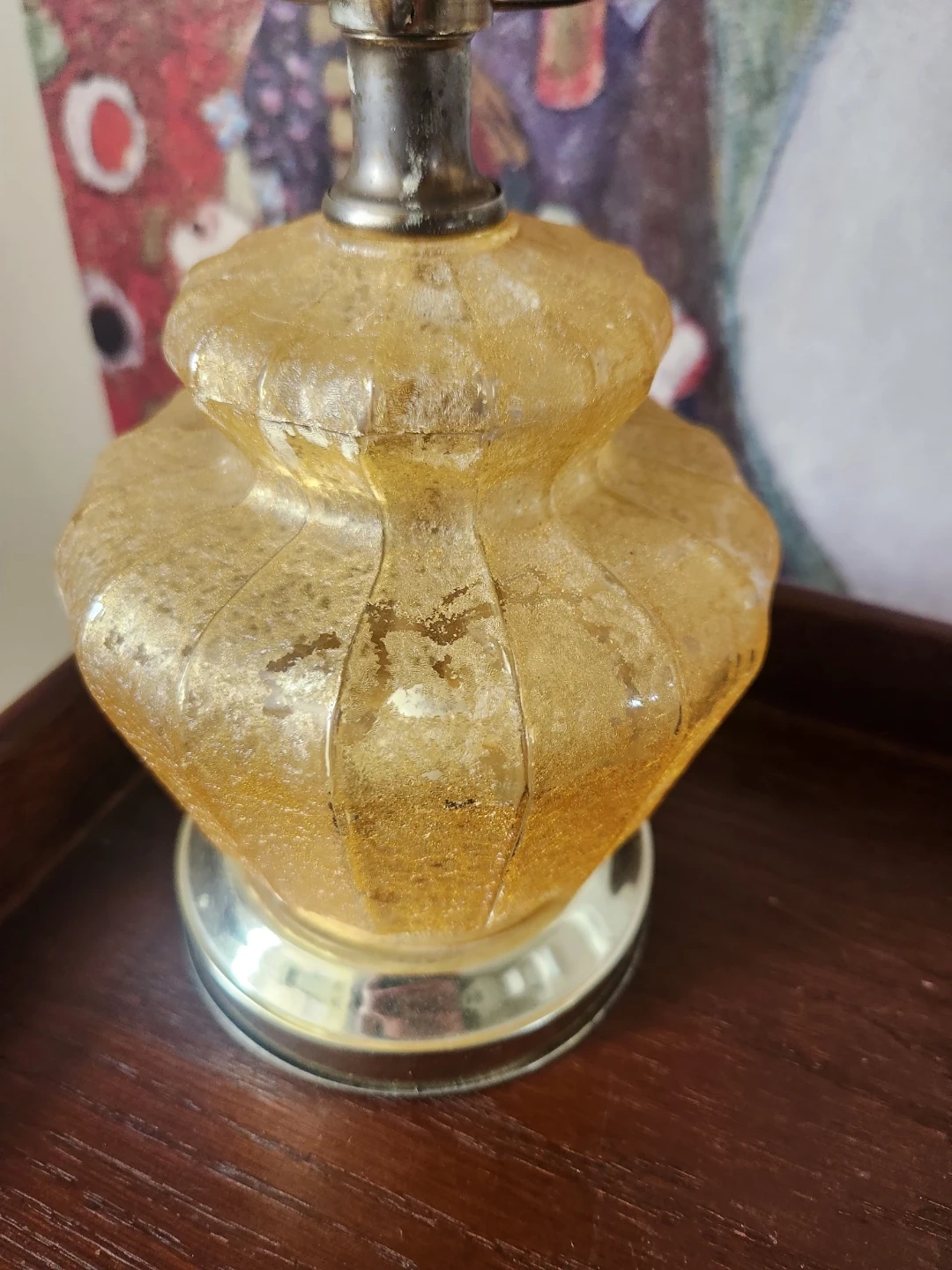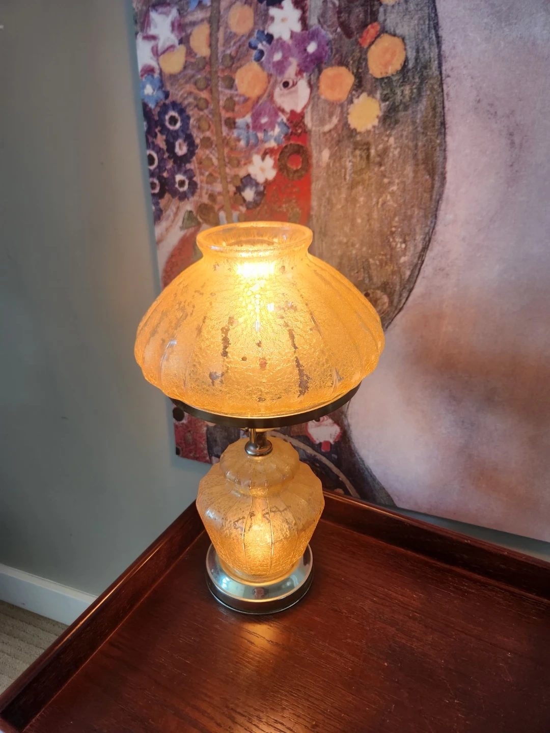 This amber glass lamp offers 3 settings. Provides a warm glow and moody illumination Textured glass shade and a base are Perfect for adding a cozy accent to any room! 15 inches high and 9 inches diameter, and its small space friendly.