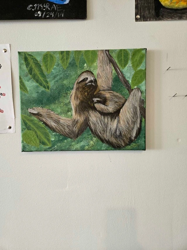 Original, hand-painted acrylic artwork titled “Mother and Child.” This piece features a mother sloth gently holding her baby—created as a quiet, tender reflection on motherhood, closeness, and protection. The focus was on softness, expression, and emotional connection rather than hyper-detail, giving it a calm, soothing presence. Original acrylic on canvas. One of a kind (not a print). Painted by me. Smoke-free home. Ready to hang. This painting took place over a couple of weeks and was created slowly and intentionally. It’s a meaningful piece, and I’d love for it to go to someone who connects with it. Price: $95. Pickup only.