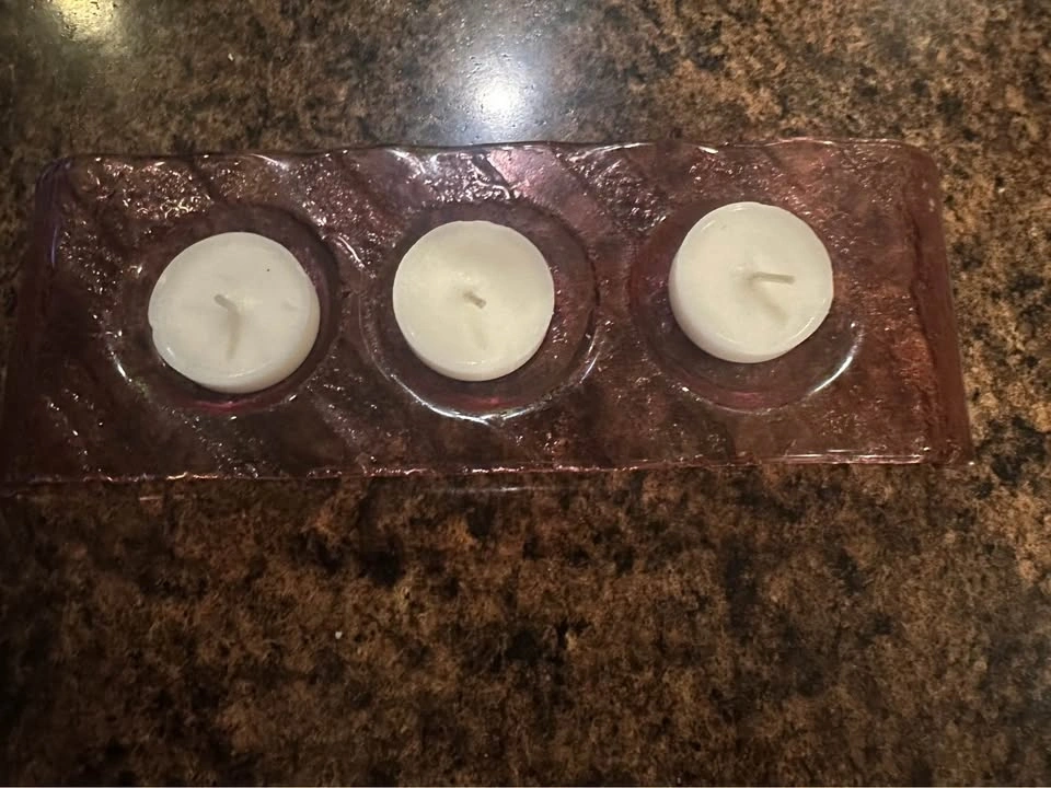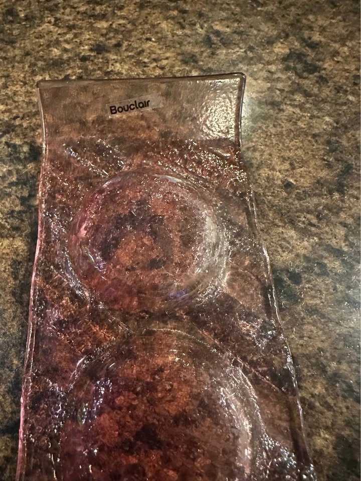 Bouclair glass candle holder designed with three circular indentations.