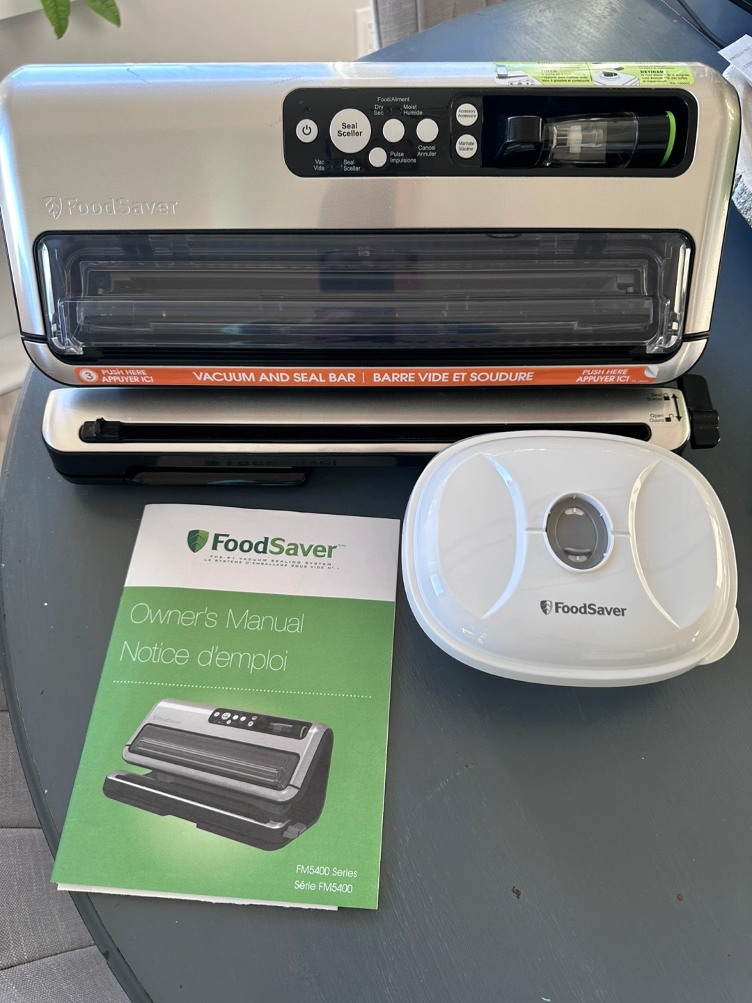 FoodSaver vacuum sealer. Includes instruction manual and extra container. Excellent condition.