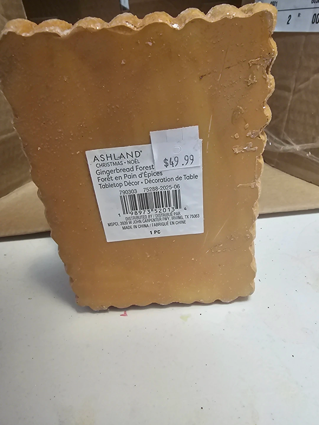 This is an Ashland Gingerbread Forest Santa tabletop decoration. It features a gingerbread-style design with white icing details. Perfect for adding a festive touch to your holiday home decor!
