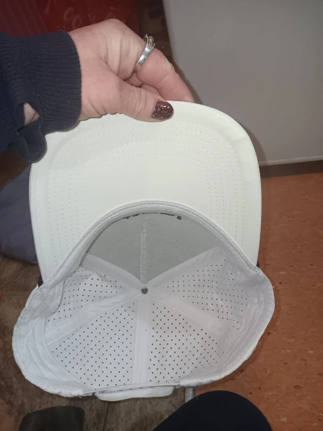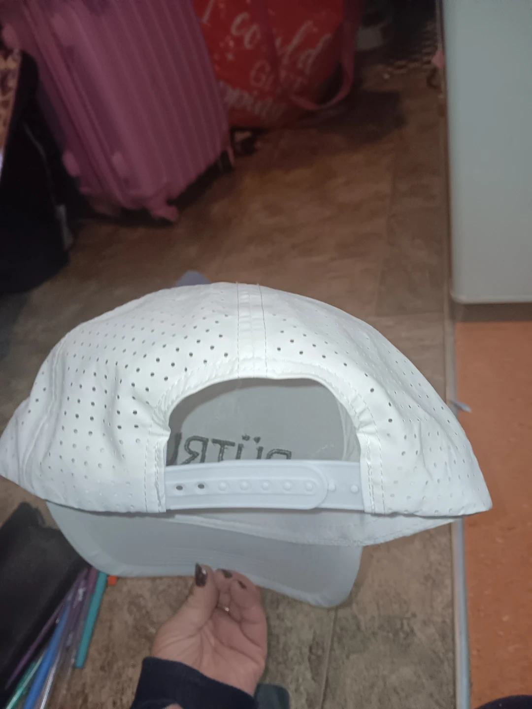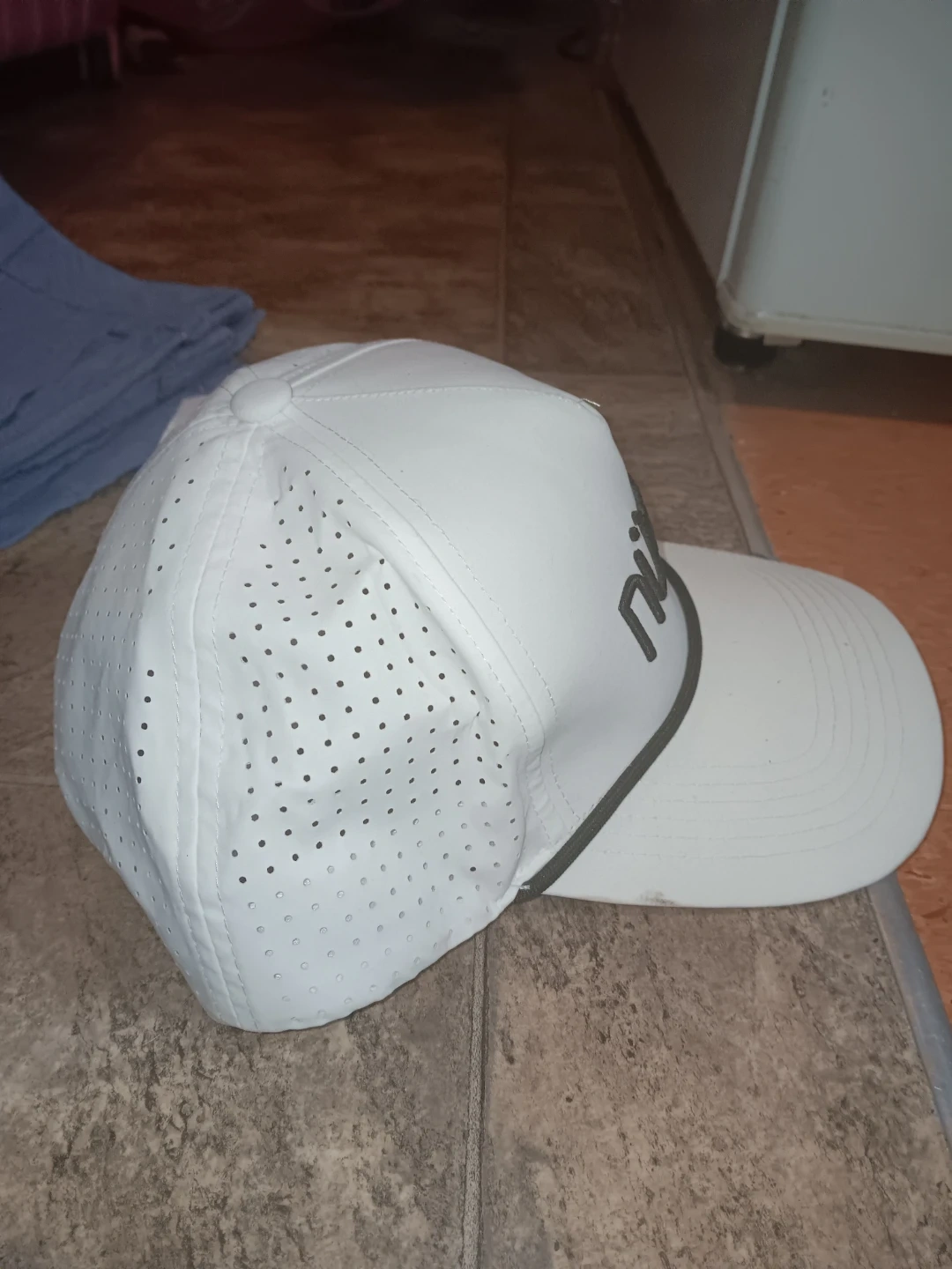 This is a white NÜTRL snapback cap. It features a perforated design for breathability and a flat brim with a rope accent. The cap has an adjustable snap closure at the back.