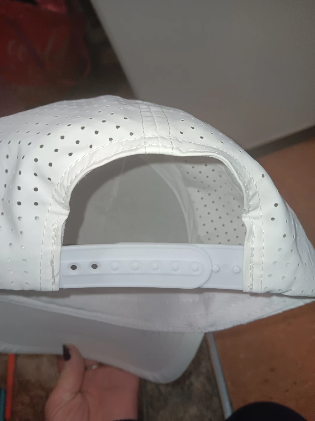 This is a white NÜTRL snapback cap. It features a perforated design for breathability and a flat brim with a rope accent. The cap has an adjustable snap closure at the back.