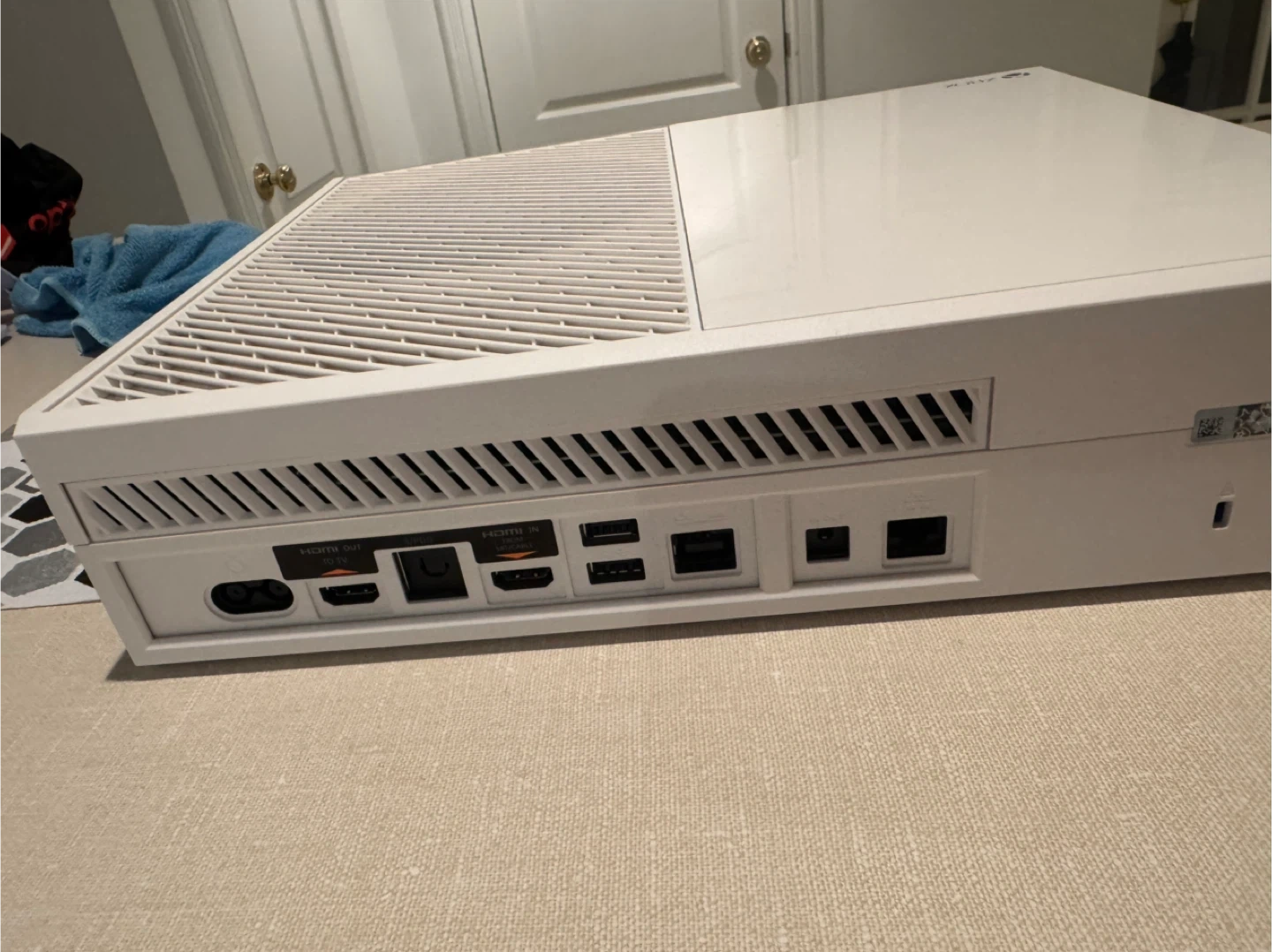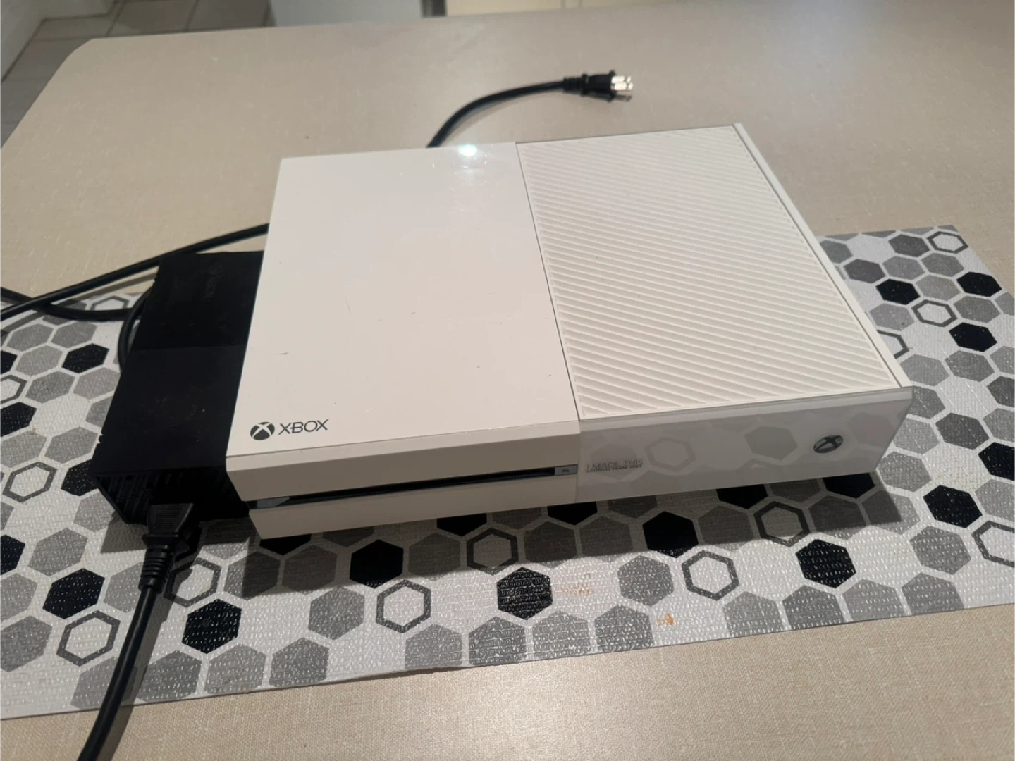 White Microsoft Xbox One S console. This gaming system is a white edition. It comes with necessary cables for power and connection. Perfect for hours of gaming fun! The disc drive works, it just makes a noise when reading. It comes without a remote controler. Price is not negotiable.