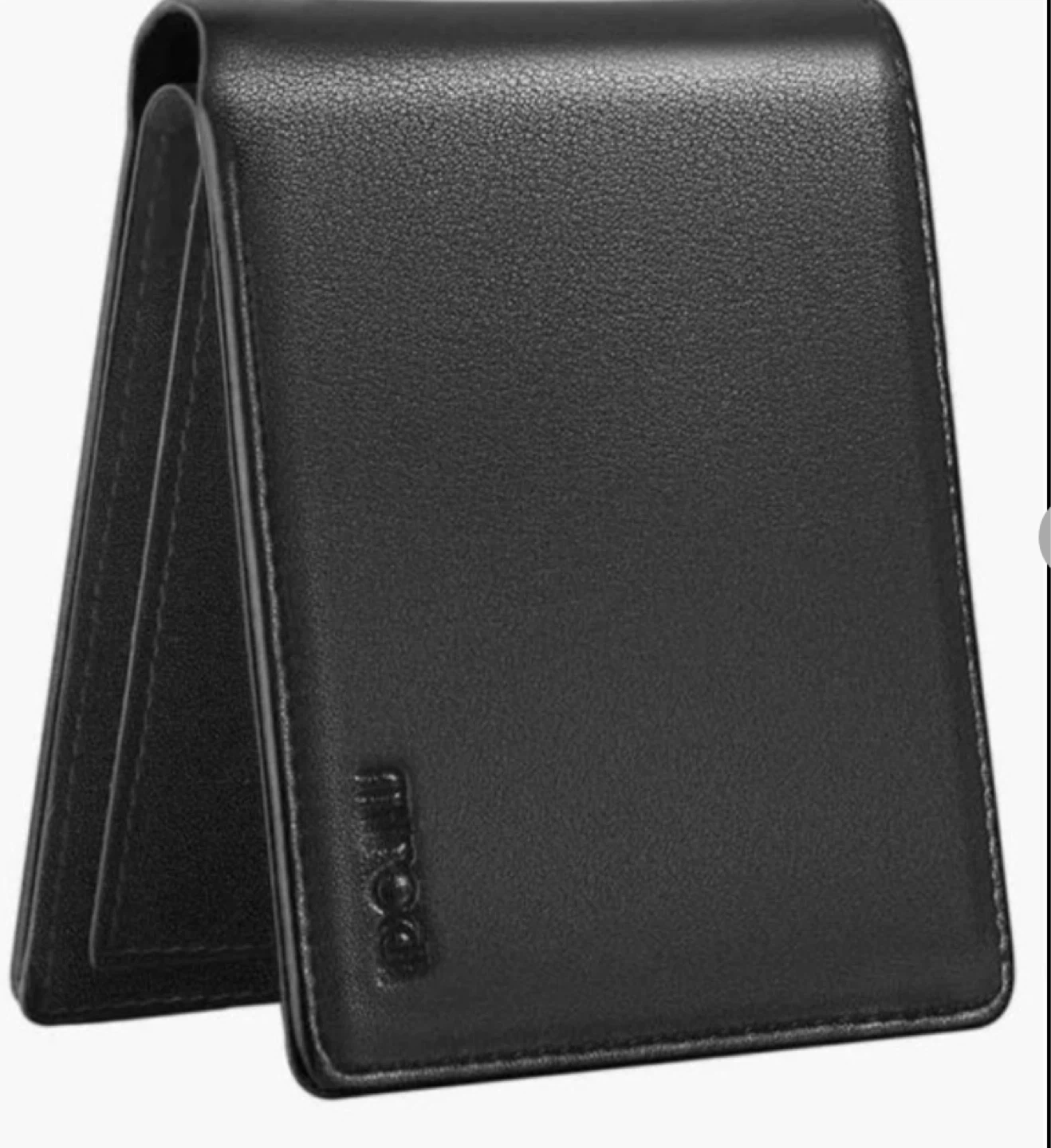 Material Miroddi Wallet for Men Built-in Anti-Loss Tracker, Real-Time Tracking Smart Bifold, RFID Blocking Men's Wallet, 7 Card Slots Travel Gifts for Dad, Christmas, Birthday, iOS Only (Classic Black-PU Leather & Black-Real Leather)