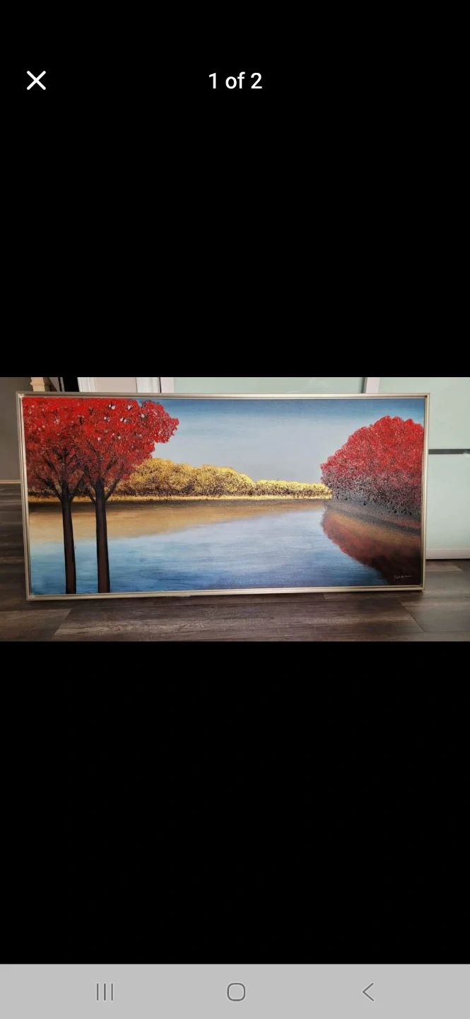 Buy & SellFramed Landscape PaintingFramed Landscape Painting$56Beautiful framed painting of a serene lake with red and gold trees. It's a lovely piece to add to any home decor.ConditionLike newWHERE TO MEETCheck LocationView MapSELLERThiaClairville100 reviews2 chats·1 favorites·23 viewsSEND CHAT TO SELLERHi Thia! I’m interested in your listing.Hi Thia! I’m interested in your listing.Get the Karrot app to chatSign In to chat