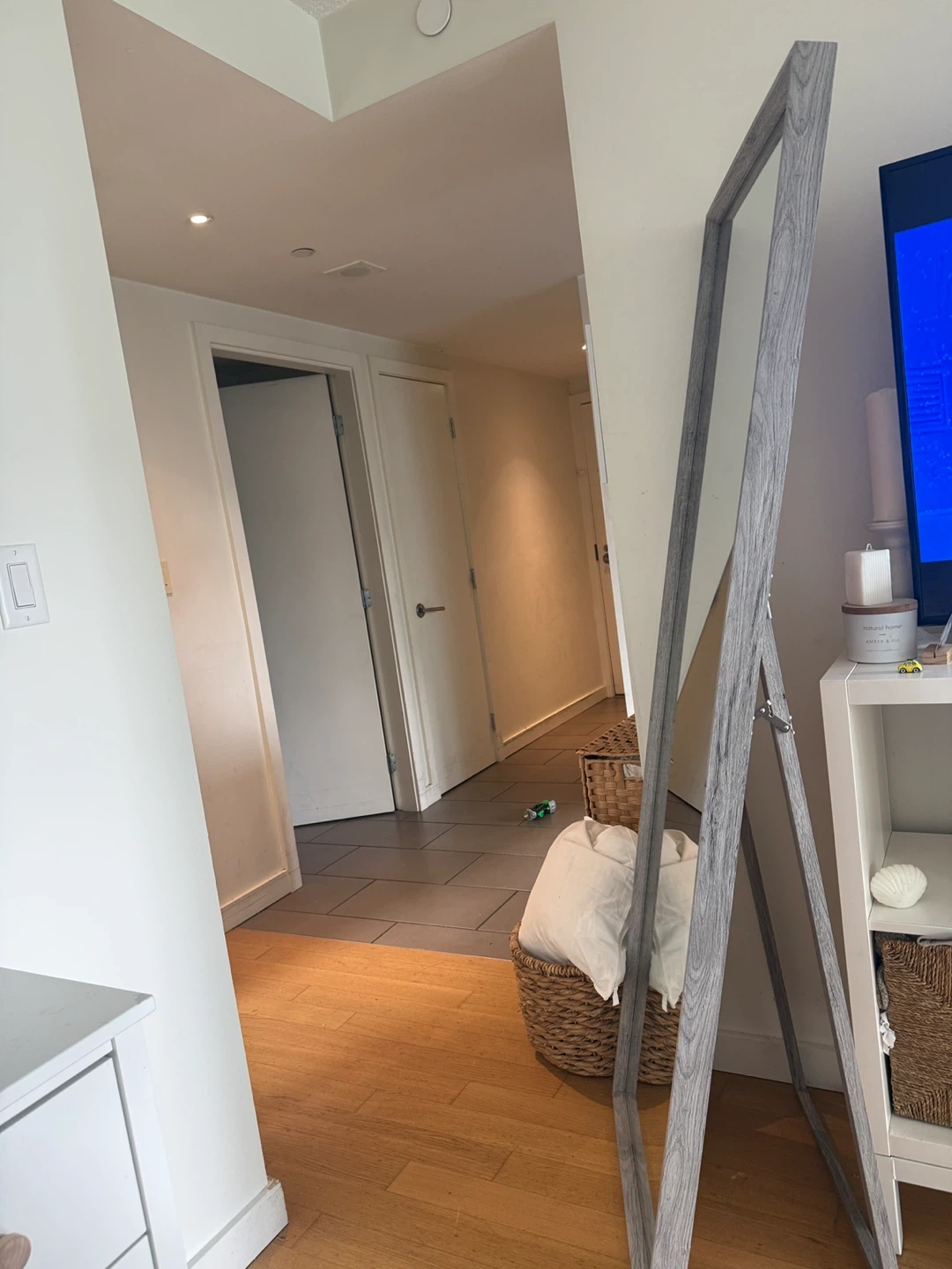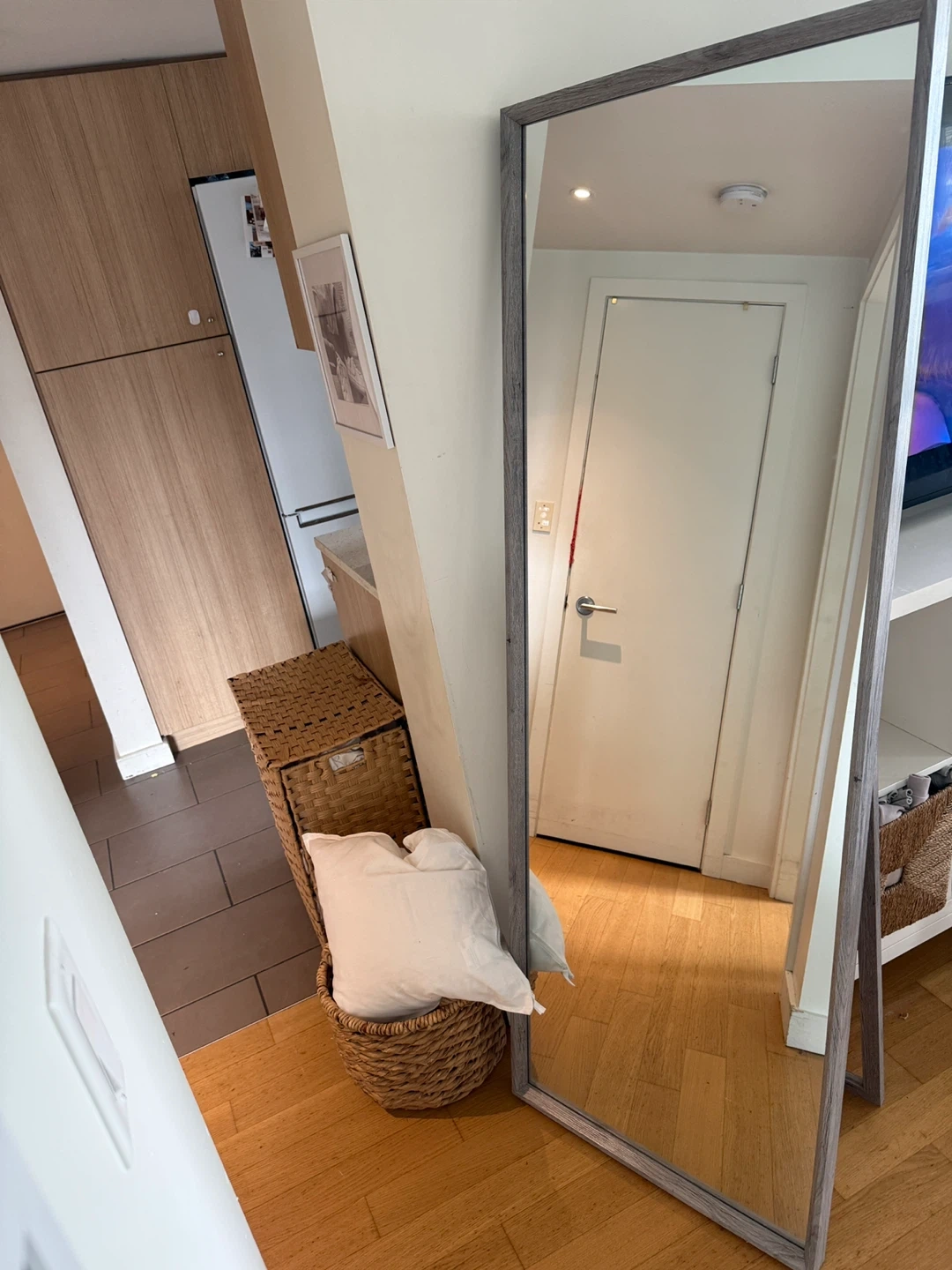 Full Length Standing Mirror with Grey Wood Frame