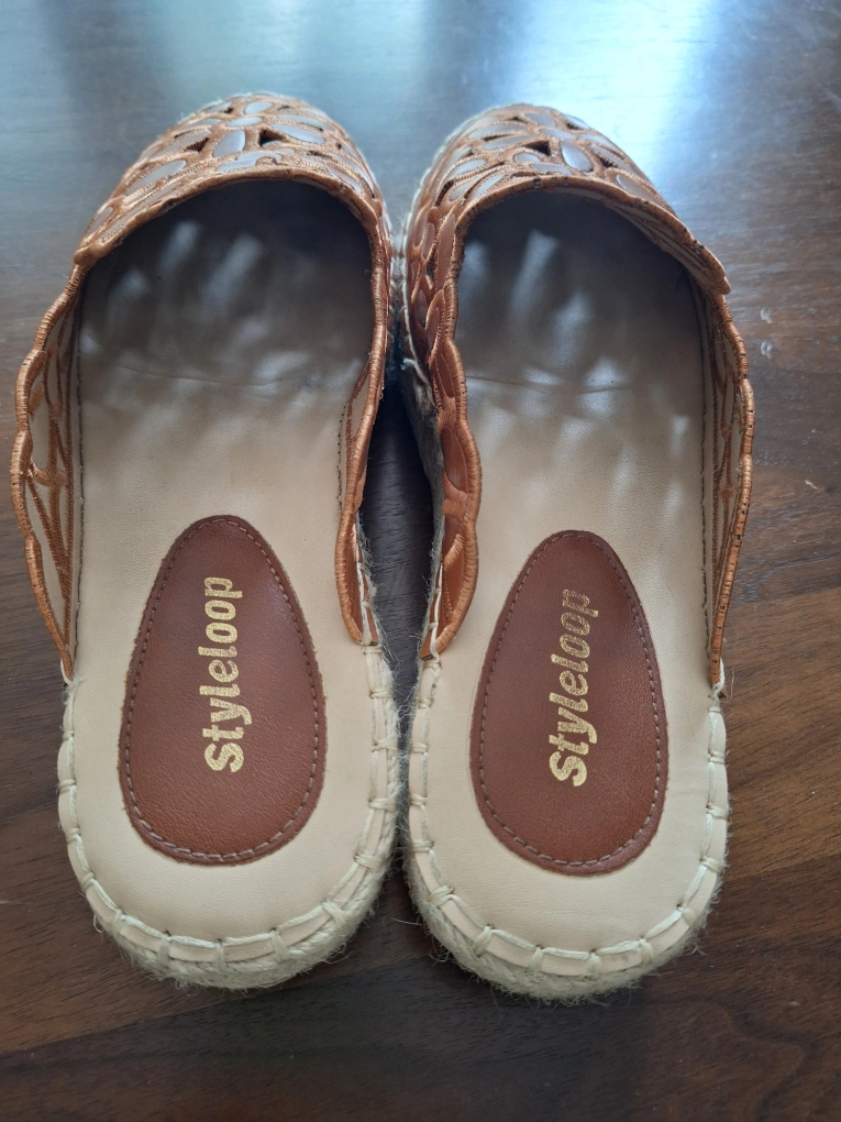 Cute brown espadrille mules. Floral cut-out design. Lightweight and comfortable. Great for summer. Barley worn. pick up in Toronto in Roncesvalles