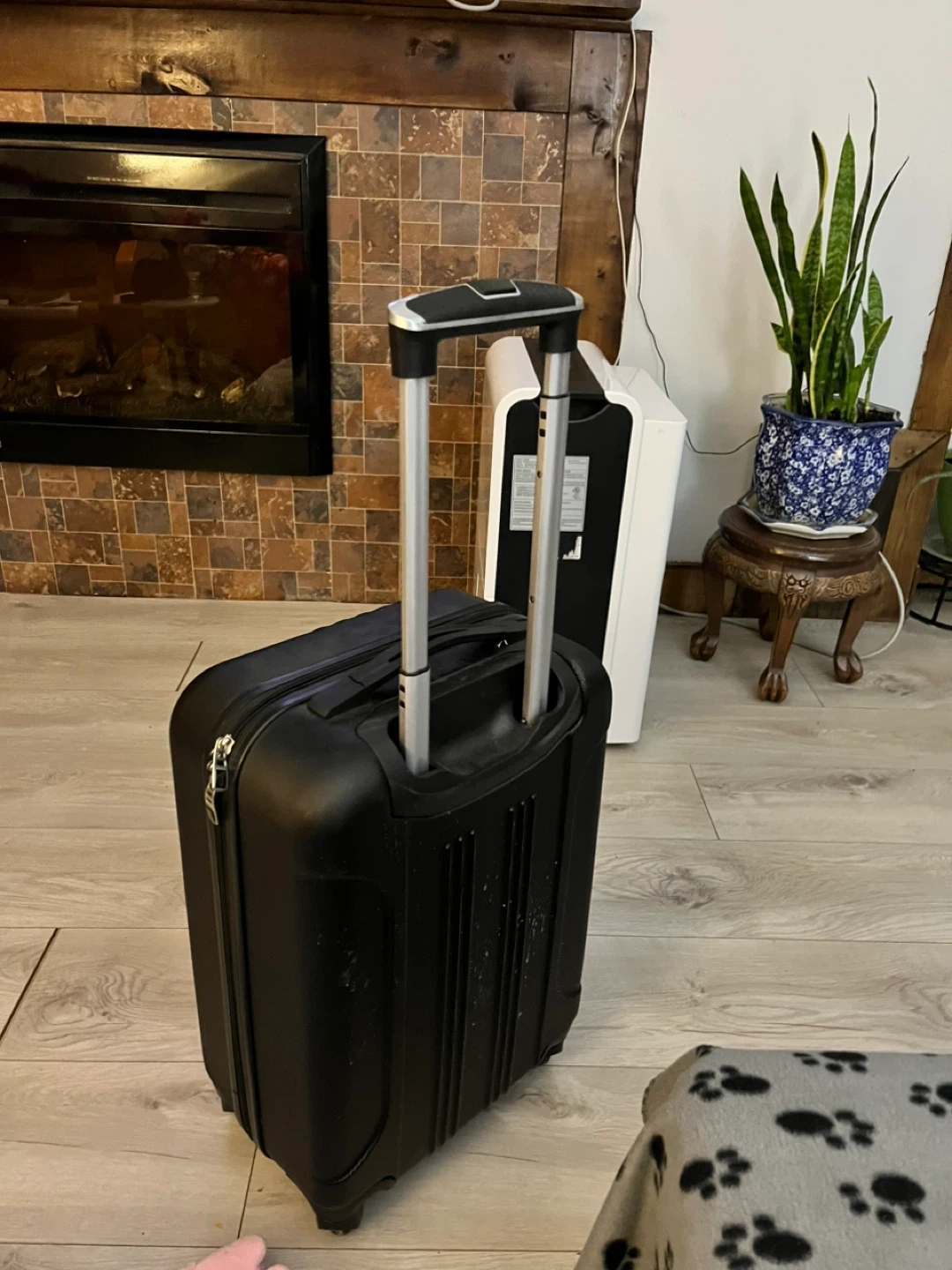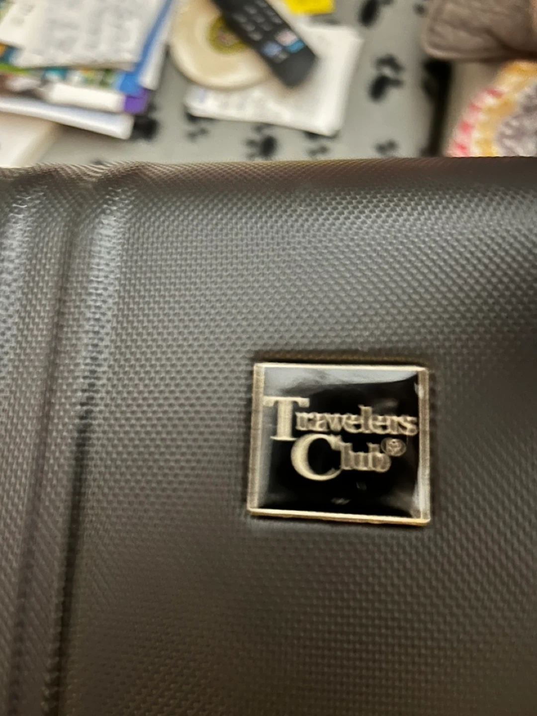 This is a black hardside carry-on suitcase from Travelers Club. It's made of durable material and has a telescoping handle for easy maneuvering. The interior is lined and features a zippered compartment.