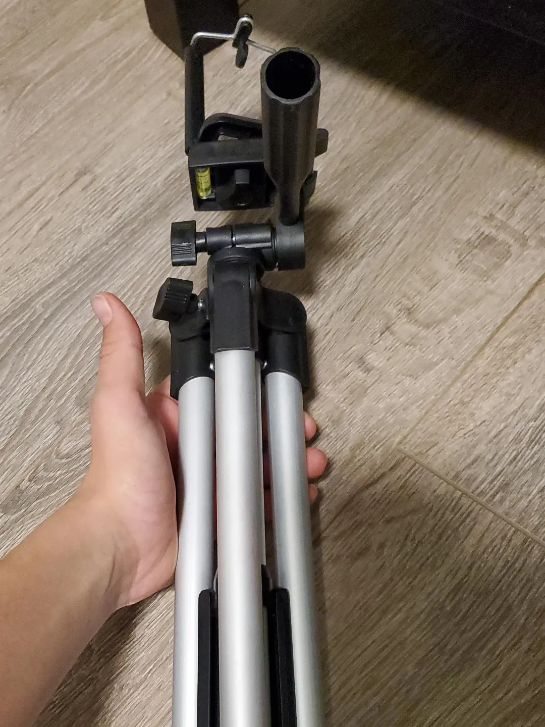 Selling a handy tripod that comes with a phone holder! It's great for taking photos or videos. It appears to be in good condition and ready to use.