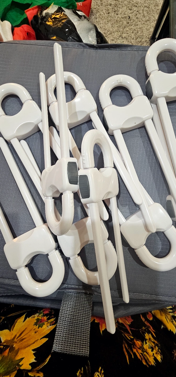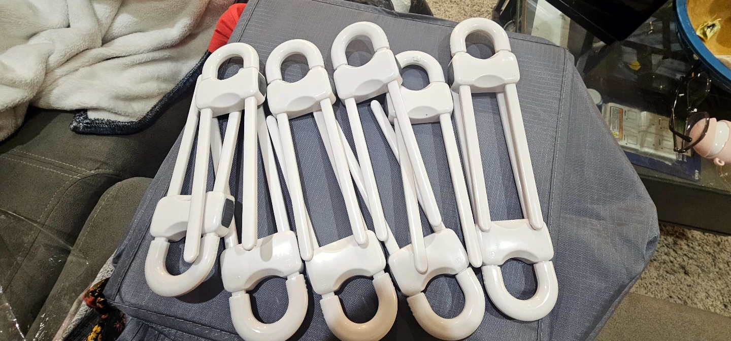 Ten white plastic closet lock. Great for if you have kids, protect from hurting the door of closets.
