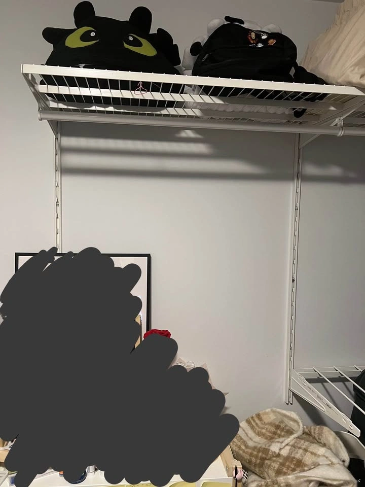 To assemble, you would need a drill, nails, and screws for the wall and braces. Like new, fairly small but tidy for extra storage and sturdy. Combination includes: 2x suspension rail (62cm), 5x bracket, 2x clothes rail (60cm), 3x wall upright (1x 100cm, 2x 200cm), 2x wire shelf, 1x pants hanger (product discontinued at Ikea).