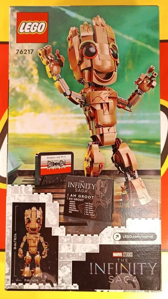 Bring the lovable Marvel character to life with the LEGO Marvel 76217 I Am Groot set! This fully posable buildable model captures Baby Groot’s charm from Guardians of the Galaxy Vol. 2, complete with a detailed design and an included “Awesome Mix Vol. 2” cassette accessory. Perfect for display or playful posing, Groot’s expressive movements make him a fan-favorite collectible for both Marvel and LEGO enthusiasts.