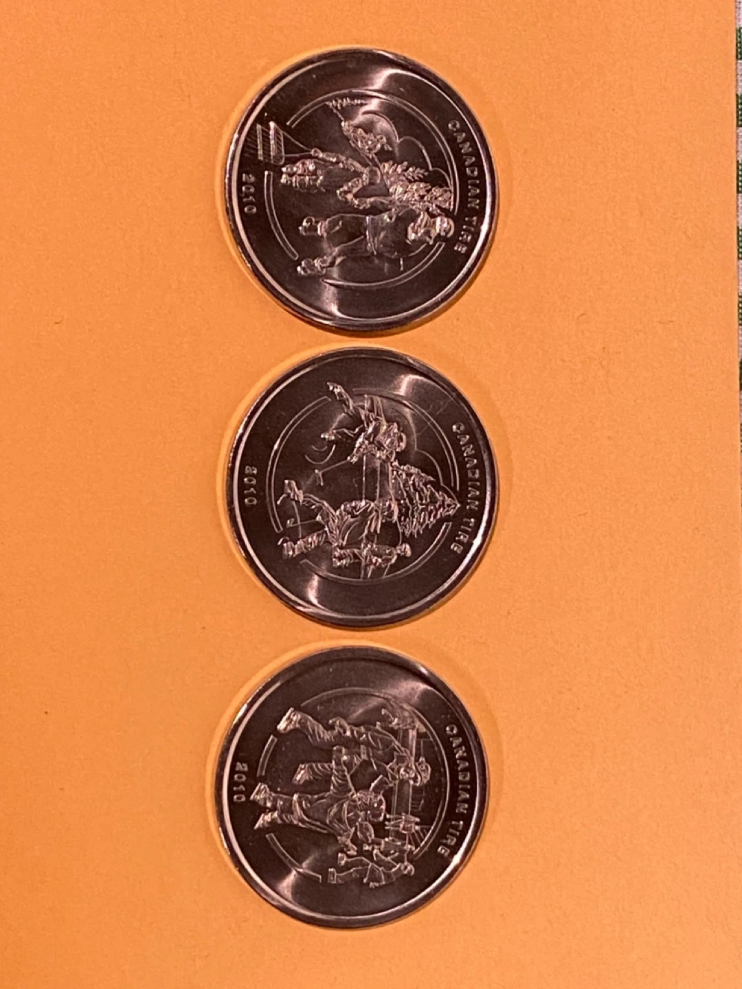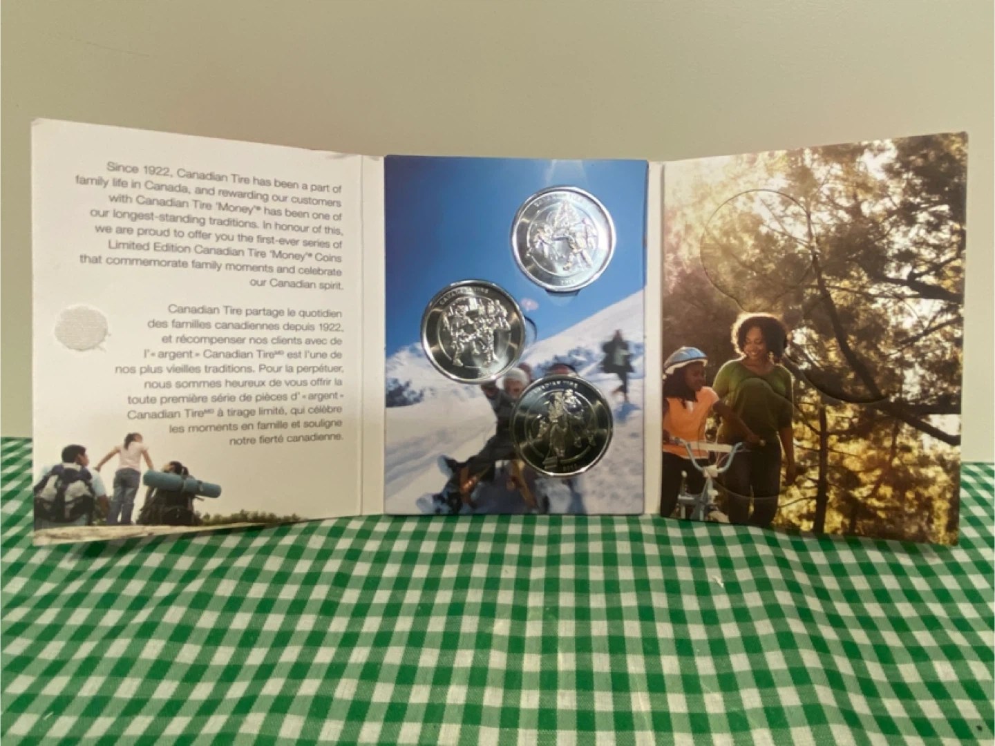 Selling a set of 3 limited edition Canadian Tire coins. These commemorate family moments and celebrate our Canadian spirit. They are in excellent condition!
