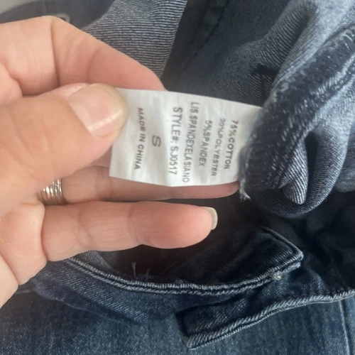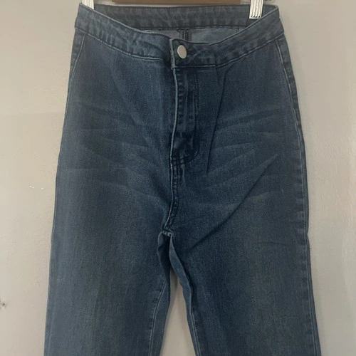 These are a pair of women's skinny jeans in a size small, featuring a 12" waist and a 42" length. Made of denim fabric in a classic blue color, these jeans offer a flattering and trendy silhouette. Perfect for everyday wear or for a more stylized look, these jeans are versatile and timeless additions to any wardrobe.