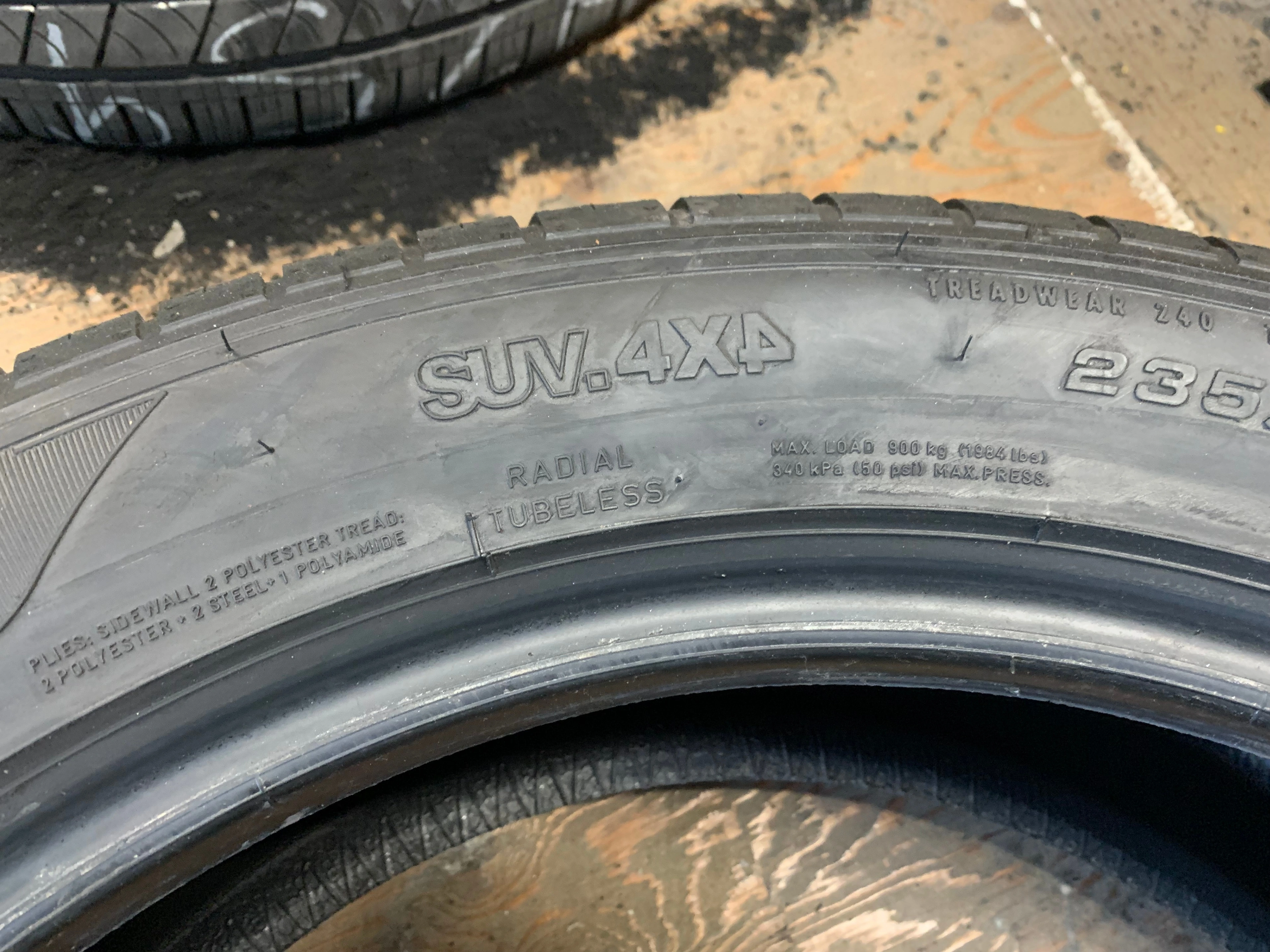 size 235/50/20 104W M+S Goodyear Eagle F1-AT SUV 4X4 with no repairs and 90% tread