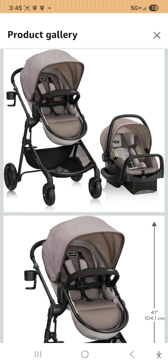 This Evenflo travel system includes a stroller and infant car seat. The stroller's dimensions are 32" x 26" x 41". It's a versatile option for families on the go!