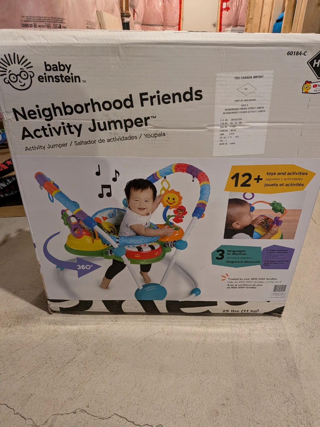 This Baby Einstein Neighborhood Friends Activity Jumper has 12+ toys and activities to keep your little one entertained. It features 3 languages to discover and a 360-degree seat.