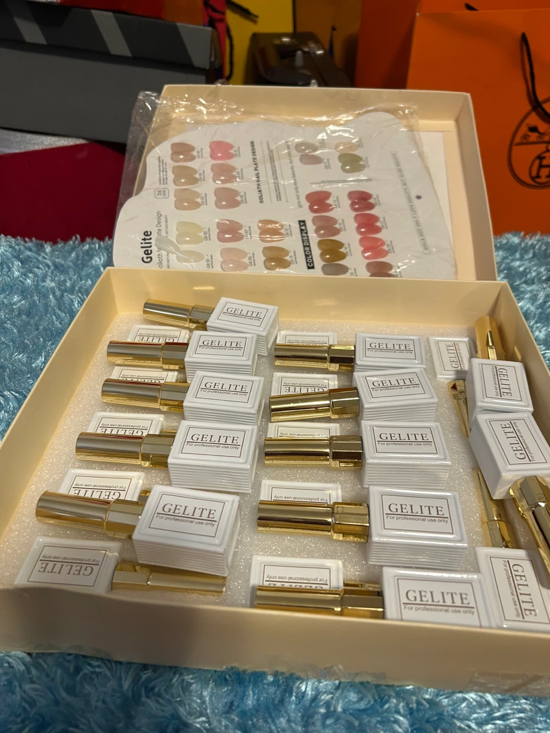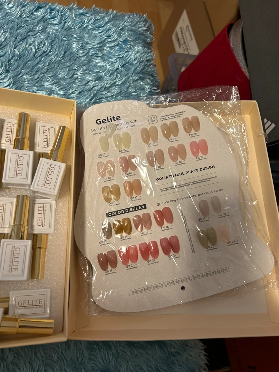 This set includes 24 colors of Gelite super glossy high quality gel polish. It's perfect for creating a variety of nail designs. Each bottle is designed for professional use.