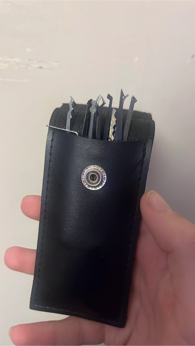 Selling a lock pick set, perfect for hobbyists or those interested in learning about lock mechanisms. It comes with a variety if lock picks