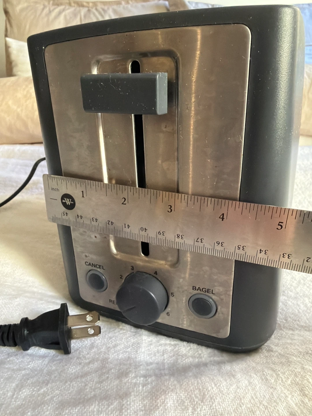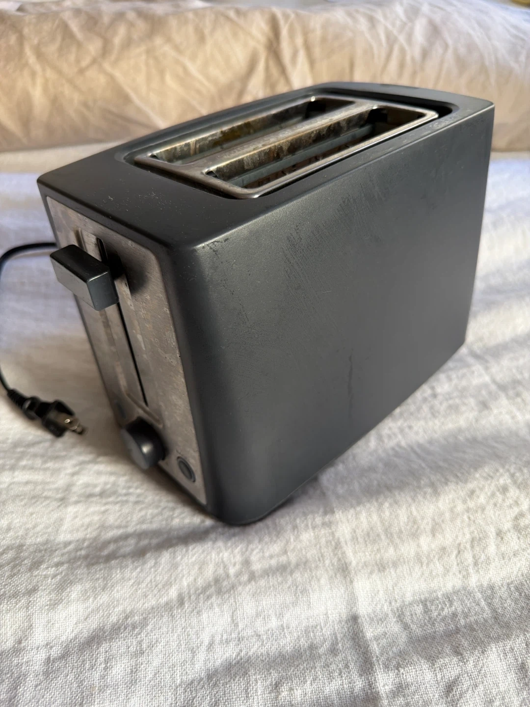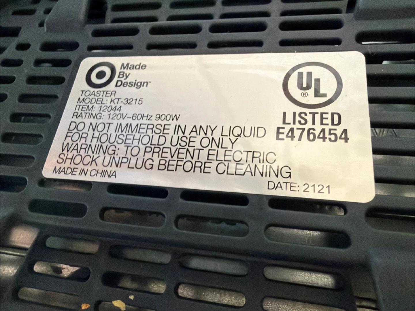 This is a Made By Design 2-slice toaster, model KT-3215. It operates on 120V-60Hz and has a 900W rating. The toaster is made in China. It includes a bagel setting and a cancel button. Still in great condition, just needs to be cleaned. Only selling because we received a new toaster as a wedding gift. Still works great.