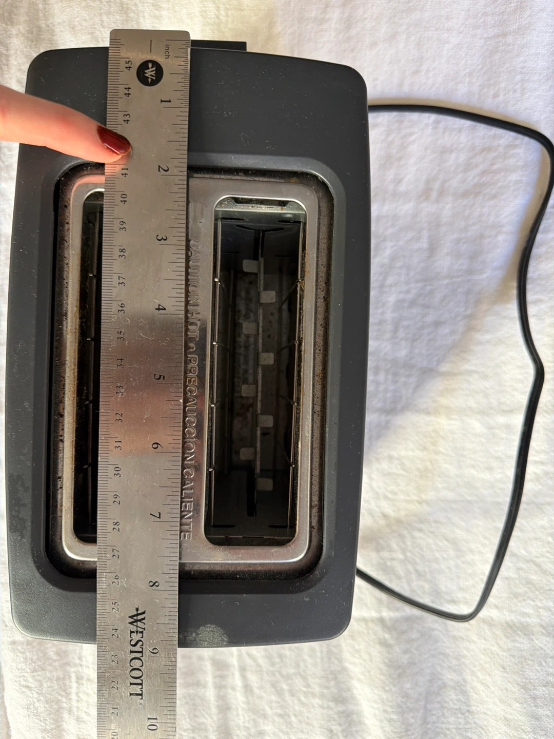 This is a Made By Design 2-slice toaster, model KT-3215. It operates on 120V-60Hz and has a 900W rating. The toaster is made in China. It includes a bagel setting and a cancel button. Still in great condition, just needs to be cleaned. Only selling because we received a new toaster as a wedding gift. Still works great.