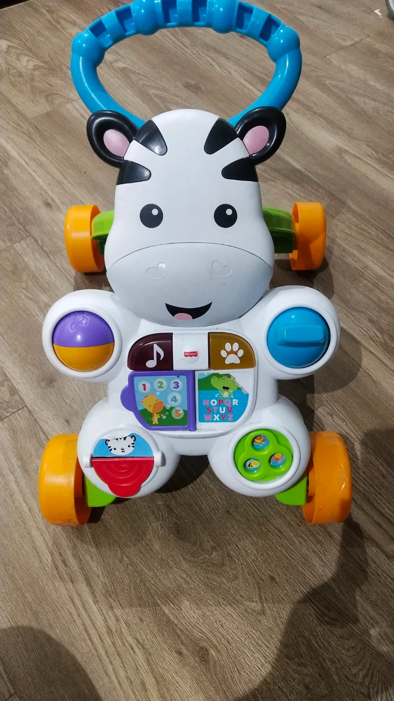 This Fisher-Price zebra walker helps little ones learn to walk! It features interactive buttons and lights for engagement. It's a great way to encourage early motor skills development. π₯