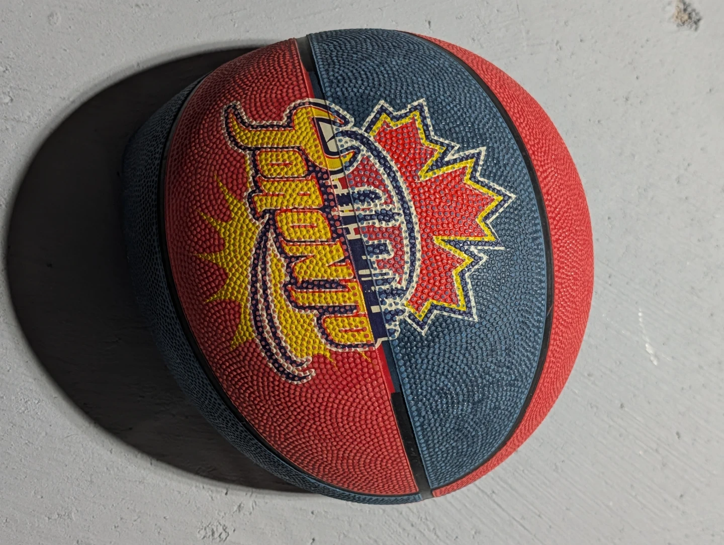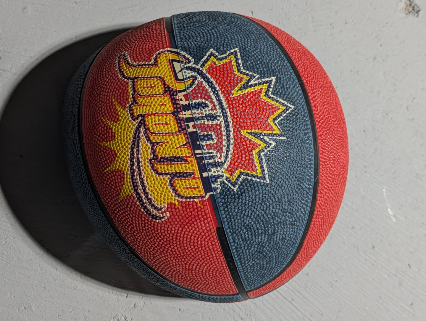 This is a Jump brand basketball. It's designed with a classic pebble grip for enhanced control. This ball's construction makes it suitable for indoor or outdoor play.