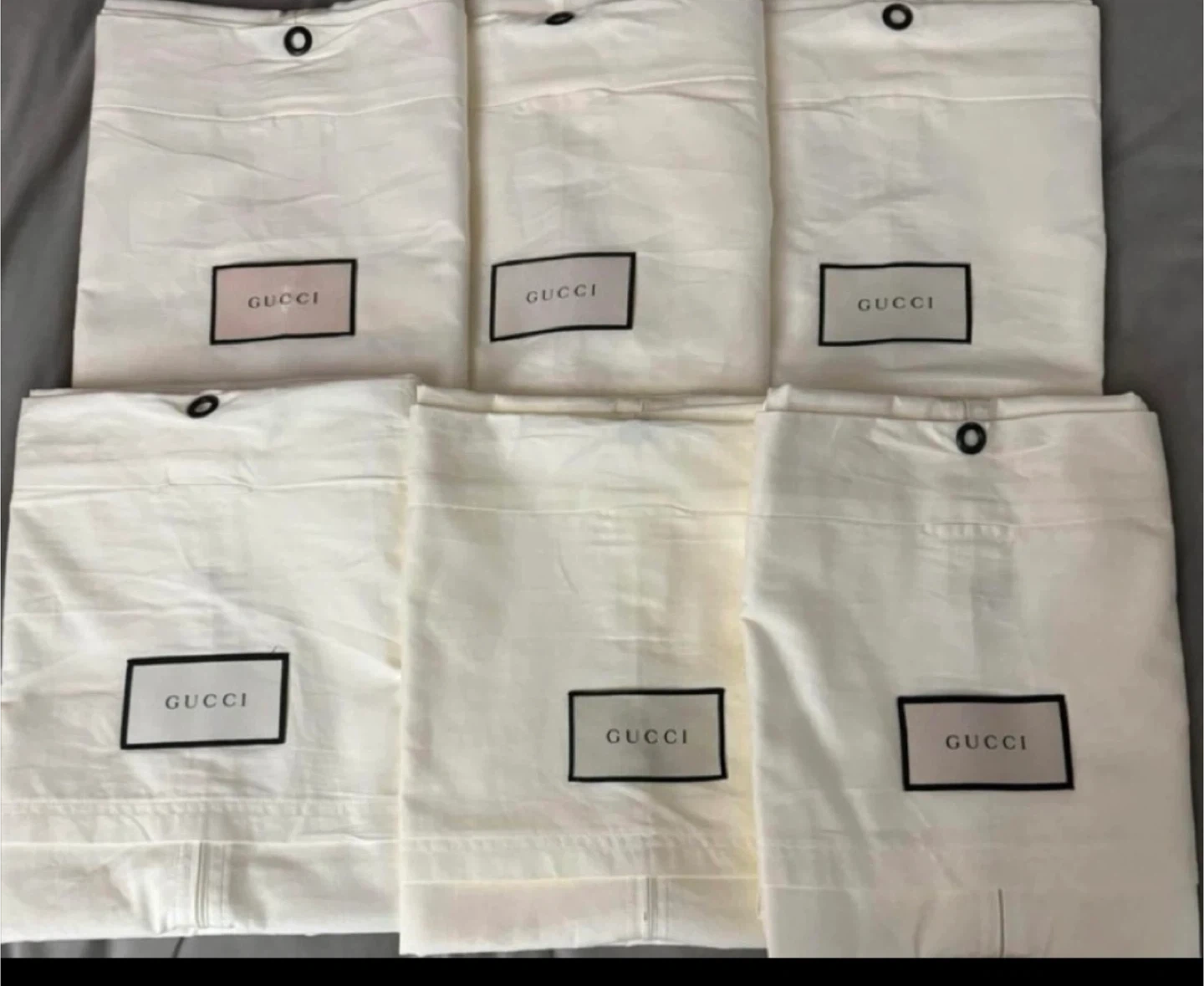 Gucci garment bag and multiple dust bags for clothing storage. Includes a Gucci tote bag. Perfect for protecting designer apparel. 30 dollars each and for the brown is 25 dollars:)