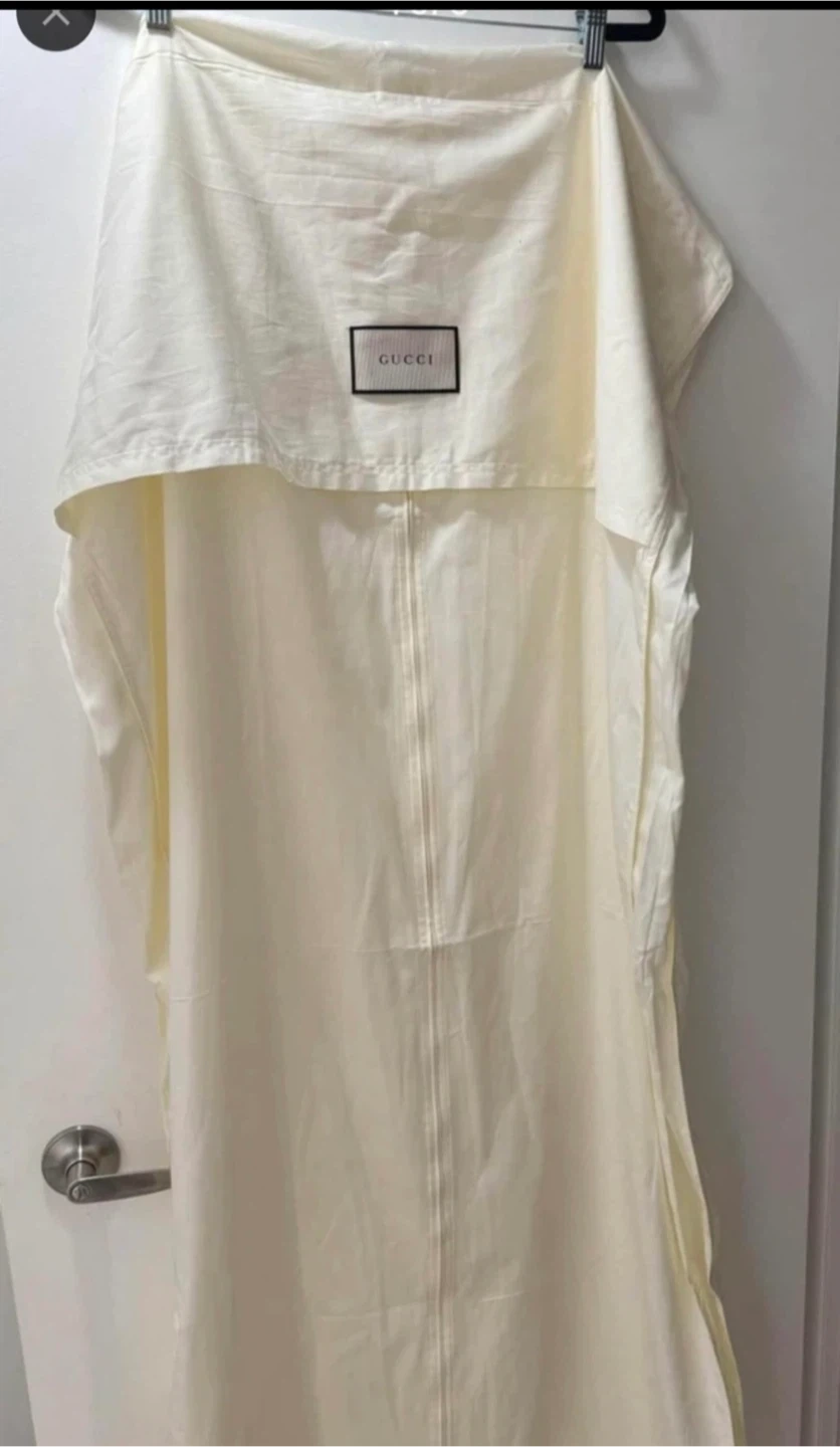 Gucci garment bag and multiple dust bags for clothing storage. Includes a Gucci tote bag. Perfect for protecting designer apparel. 30 dollars each and for the brown is 25 dollars:)