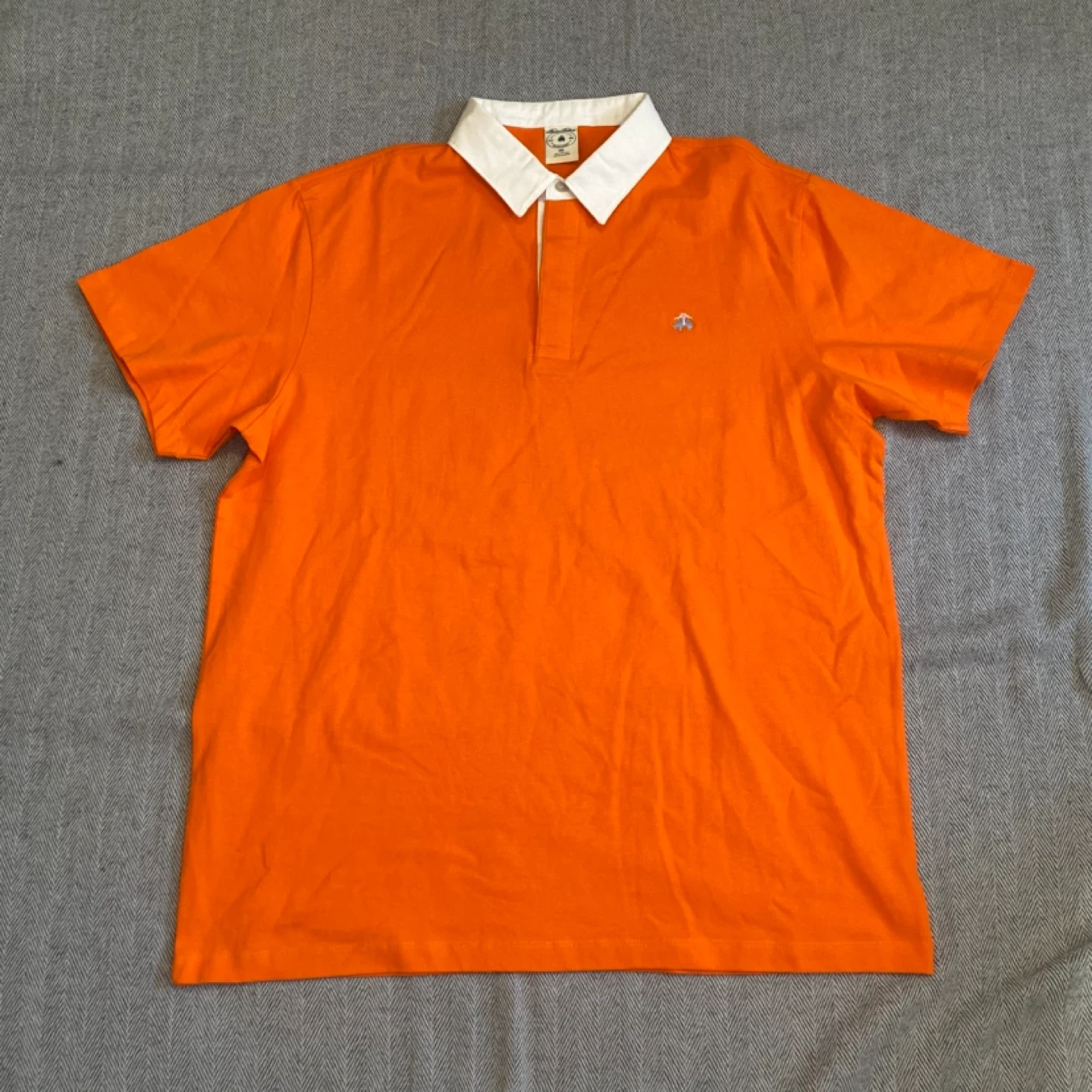 Brooks Brothers polo in a bright orange colour. Size 2XL. Made of 100% cotton. This shirt is great for casual wear.