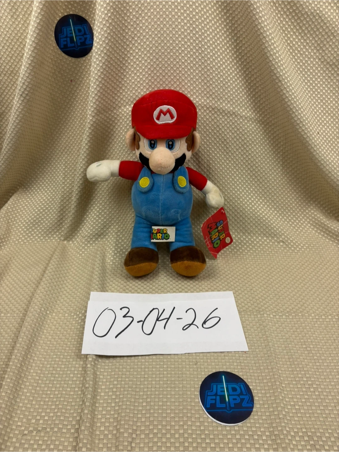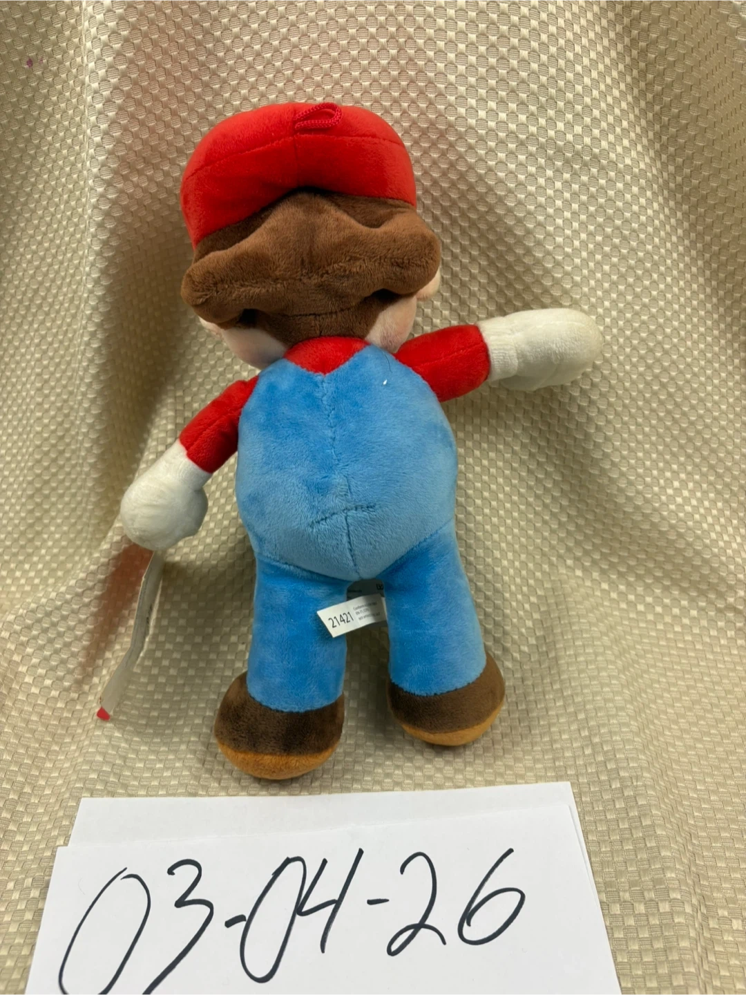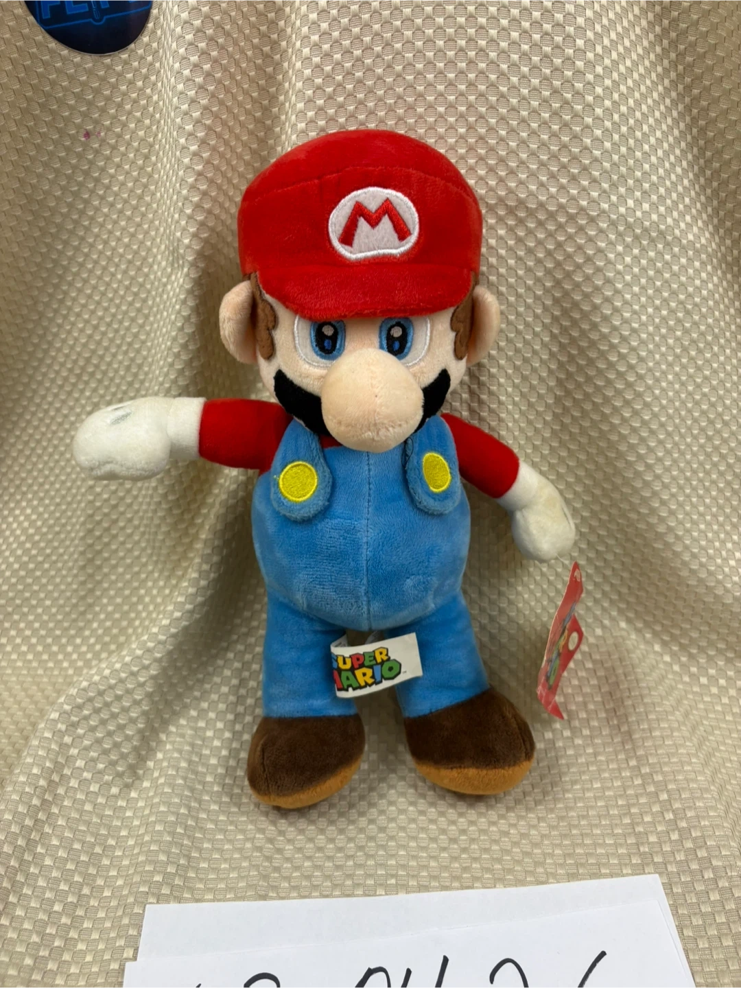 This is a Super Mario plush toy. It's made of soft material and features his classic red hat and blue overalls. Great for any Super Mario fan!