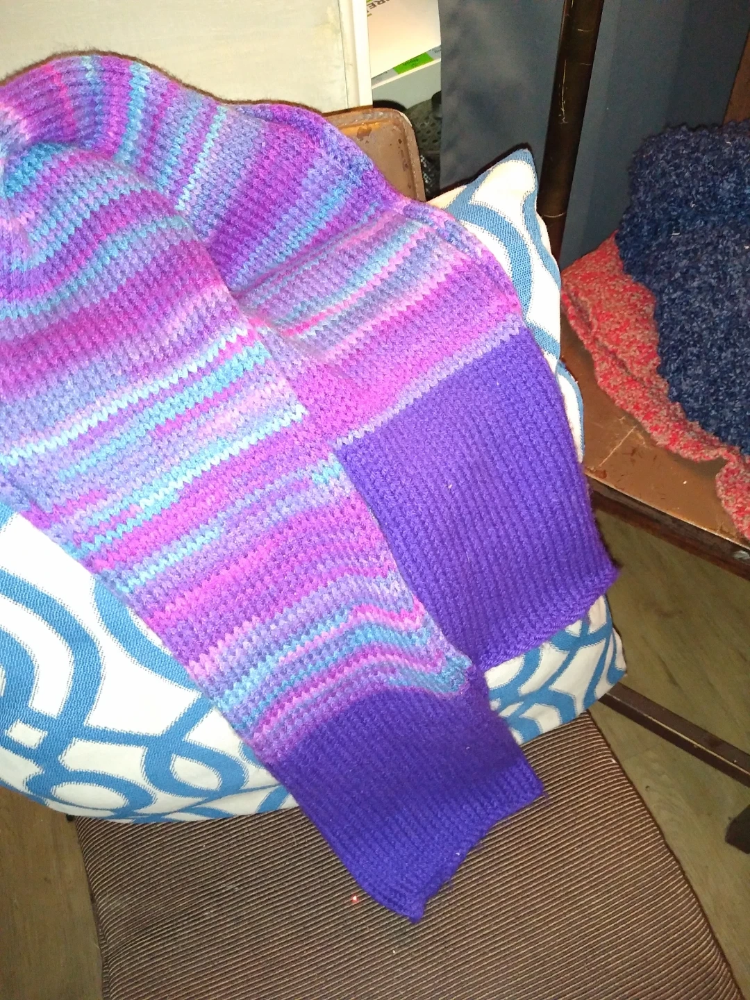 This is a hand knit brand new scarf with very colorful turquoise and purple knit, cozy and warm perfect for winter, great for somebody on your Christmas list.