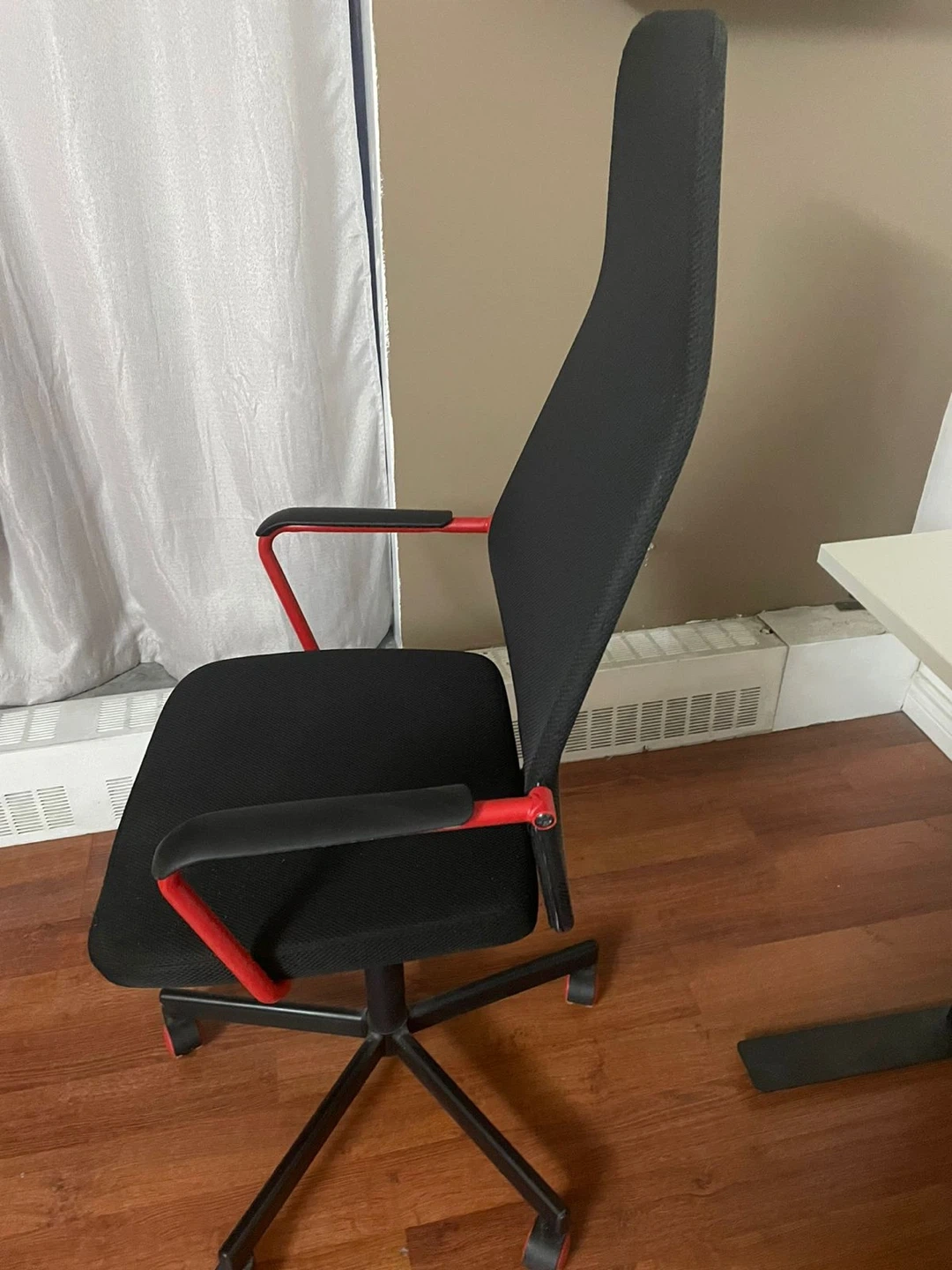 Black office chair with red accents