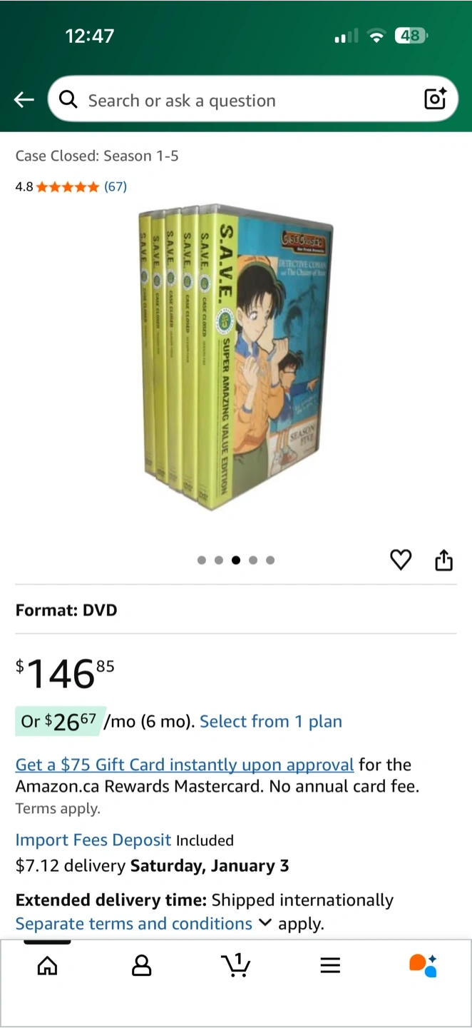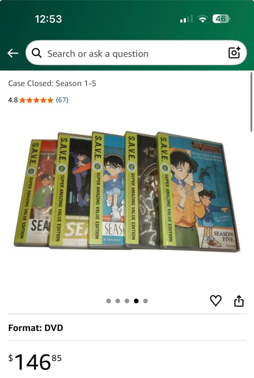 Selling a brand new, sealed DVD box set of Case Closed with Seasons 1–5 all in one set.