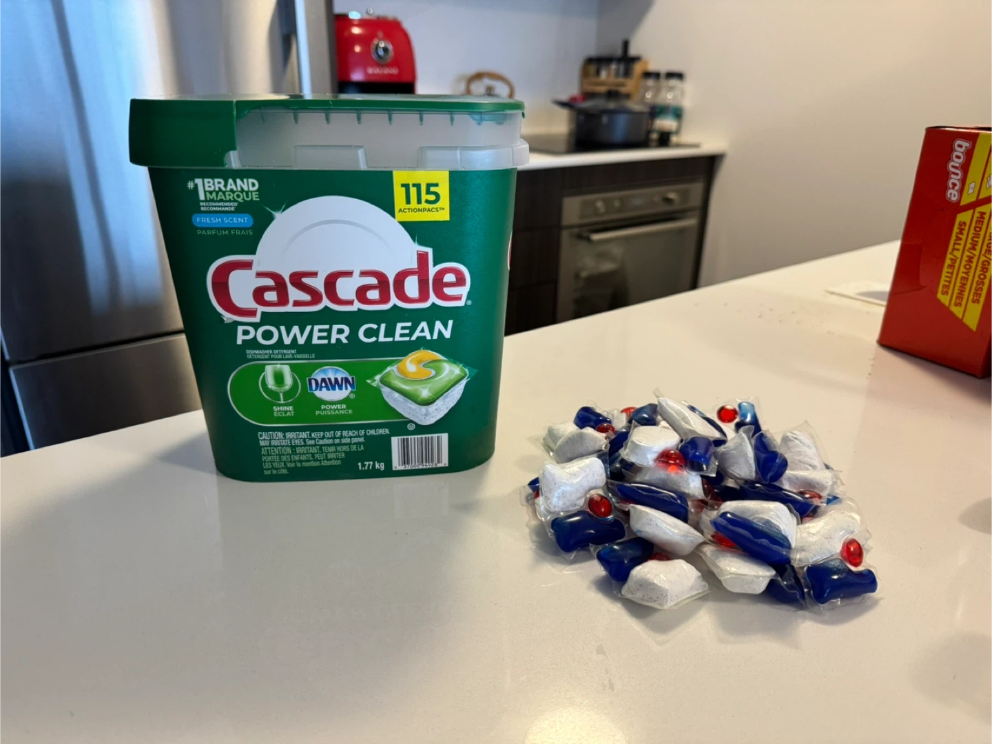 You'll get 105 Cascade Power Clean dishwasher pods + extra 24 Finish Poweball Quantum Ultimate pods + 11 Cascade Platinum Plus pods = 140 pods. I’m selling them because I’m moving soon. Pickup at Eglinton area, cash only.