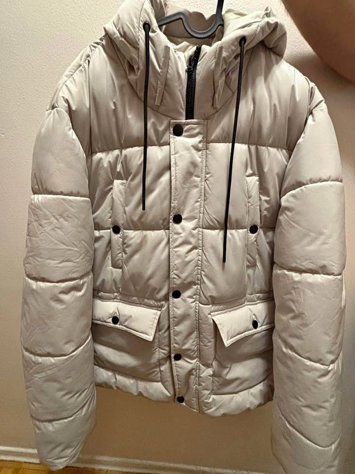 Stay warm and stylish this winter with this White Puffer Jacket (Size Large) 🤍