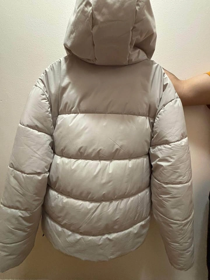 Stay warm and stylish this winter with this White Puffer Jacket (Size Large) 🤍