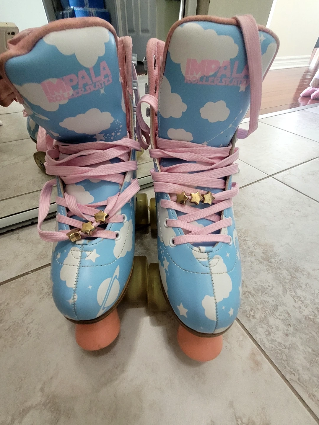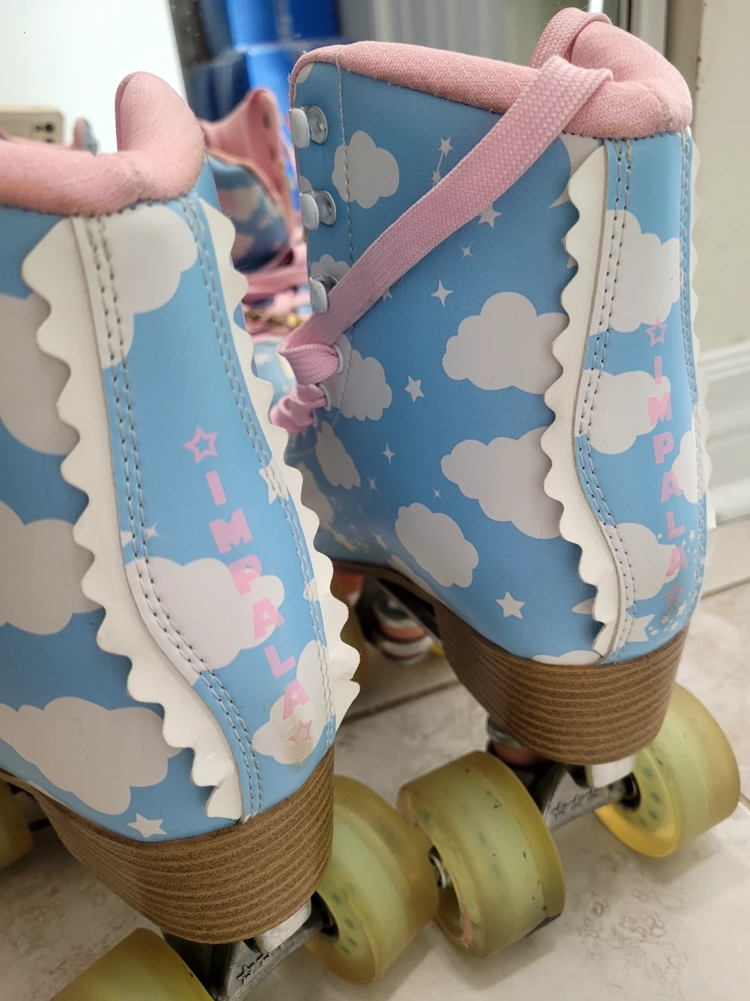 Buy & SellImpala Roller Skates Size 6Impala Roller Skates Size 6$64Cute Impala roller skates with a blue cloud print. Size 6, includes original box and packaging. These skates are ready for some fun rolling!ConditionLike newWHERE TO MEETYonge and FinchView MapSELLERverifiednormalFinch600 reviews0 chats·1 favorites·26 viewsSEND CHAT TO SELLERHi normal! I’m interested in your listing.Hi normal! I’m interested in your listing.Get the Karrot app to chatSign In to chat
