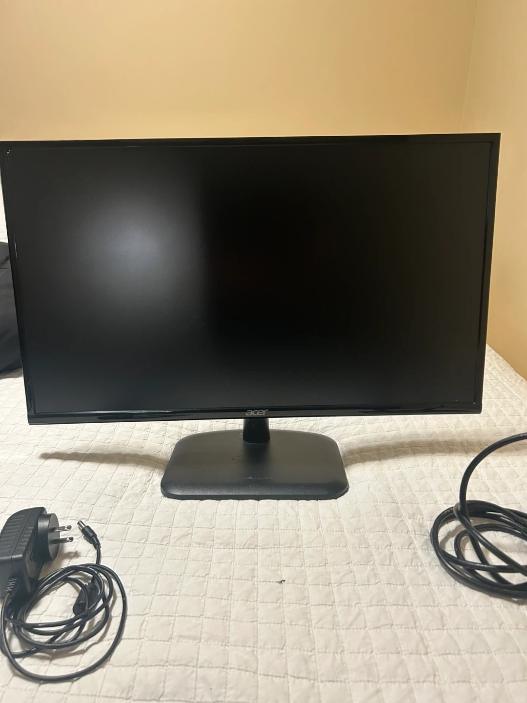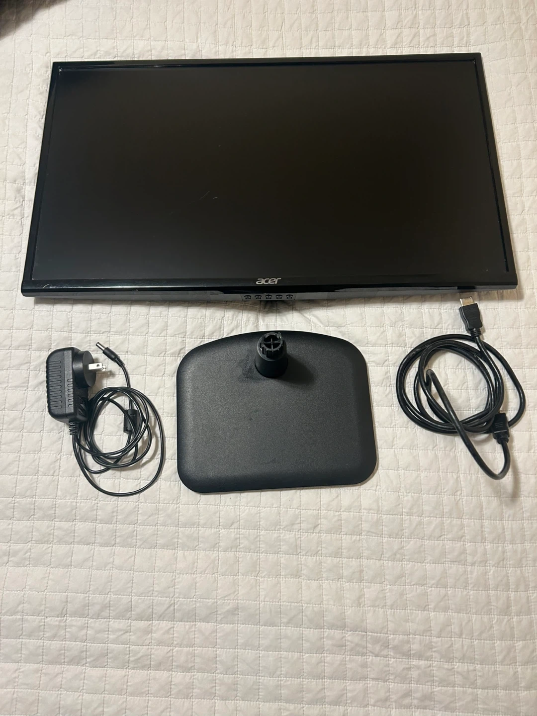 Selling an Acer SA220Q 21.5" LED Monitor (60 hz) in good condition! It comes with the power adapter and HDMI cable. (DOES NOT COME WITH THE STAND PART) minimal scratches on the screen. (can attach to a monitor mount though)