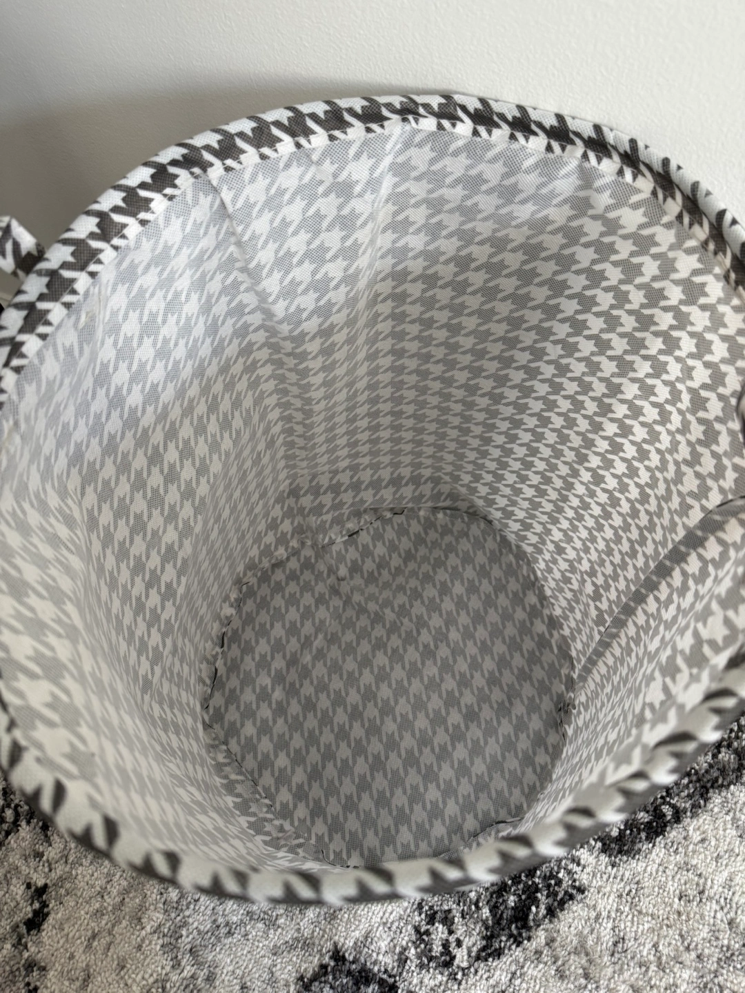 This houndstooth storage bin is perfect for organizing your space. It's a stylish and practical way to keep things tidy. The black and white pattern adds a touch of elegance to any room. Great for storing toys, laundry, or other household items