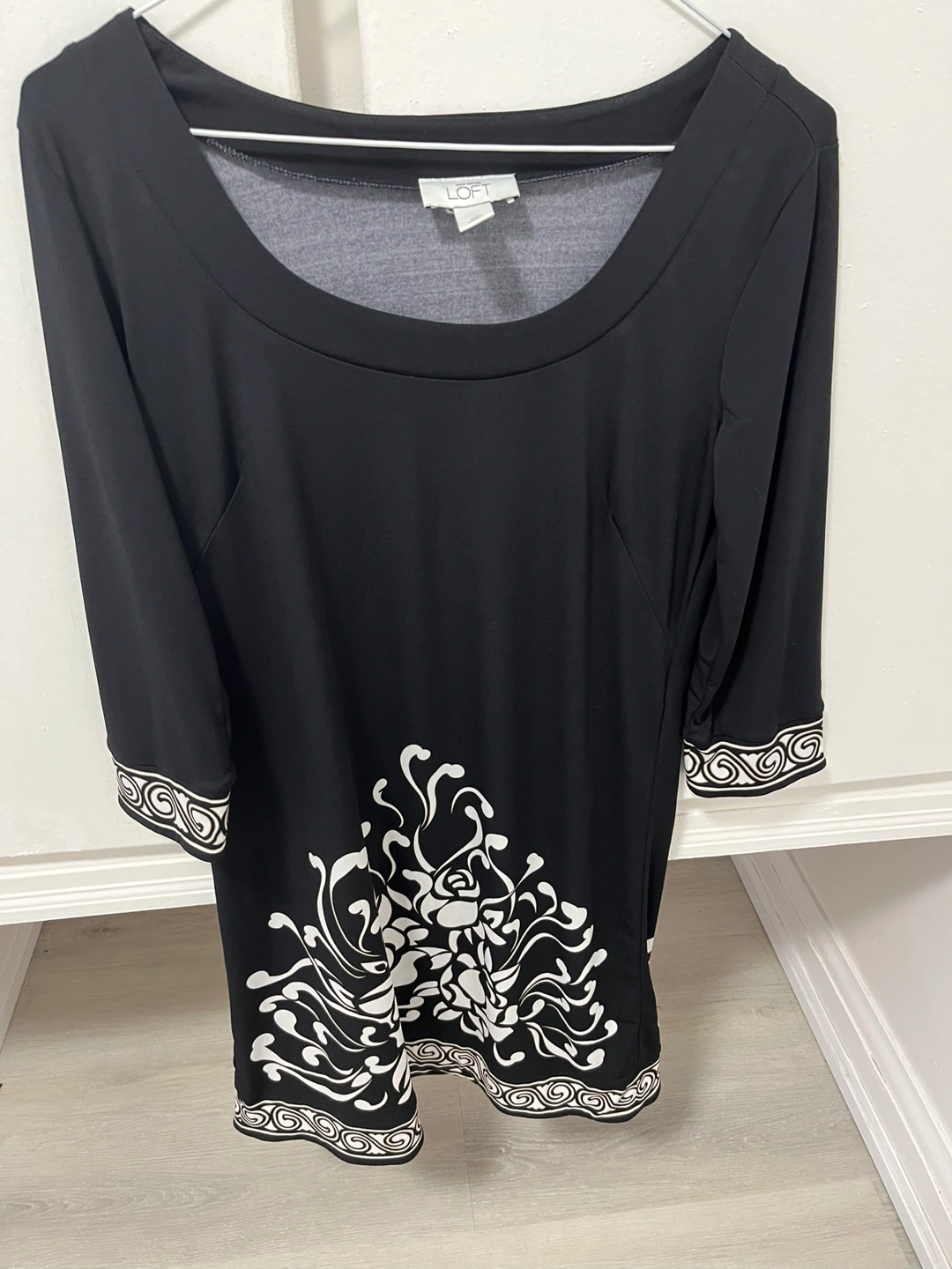 Black and white dress. Three-quarter sleeves. Floral print. Size XS. Great for any occasion. Great for summer. From Ann Taylor Loft
