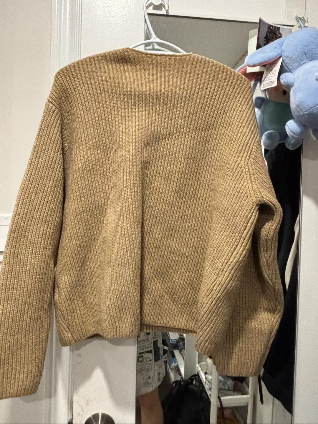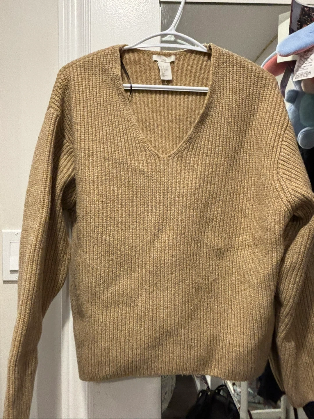 A cozy beige knit sweater from H&M! This V-neck is perfect for layering or wearing on its own. It's in great condition and ready for a new home. Feel free to reach out if you have any questions!