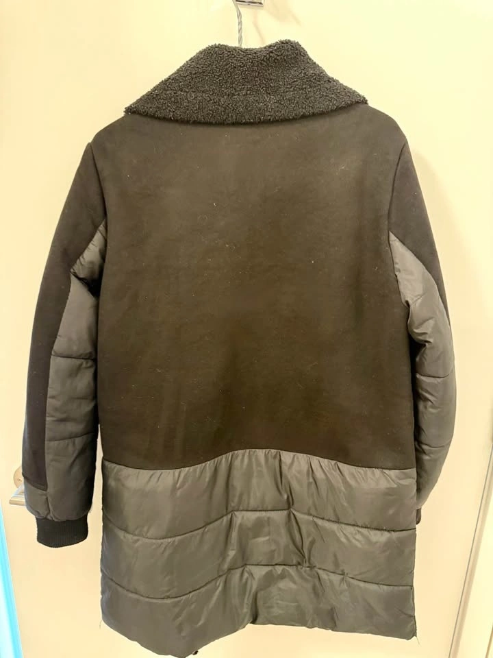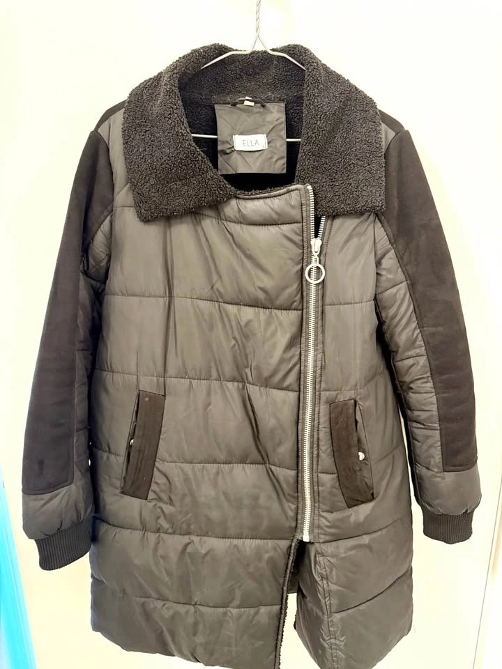 Stylish black winter jacket from ELLA, size Small. Perfect for current weather it’s waterproof, with a cozy sherpa-style collar and padded body for extra warmth. Size: Small. Color: Black. 100% Polyester. Warm padded design with soft collar. Functional zipper and pockets. Perfect for current climate (waterproof). Great everyday winter coat. Comfortable, warm, and easy to style.